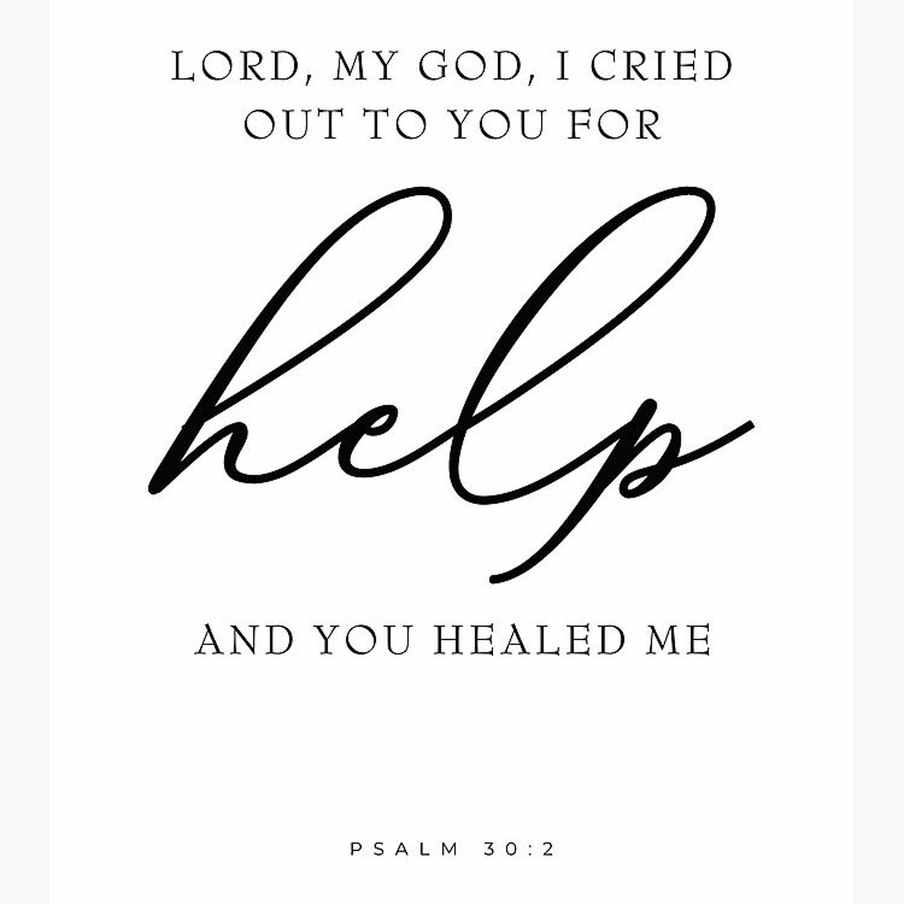 Psalm 30:2, ESV: O LORD my God, I cried to you for help, and you have healed me.