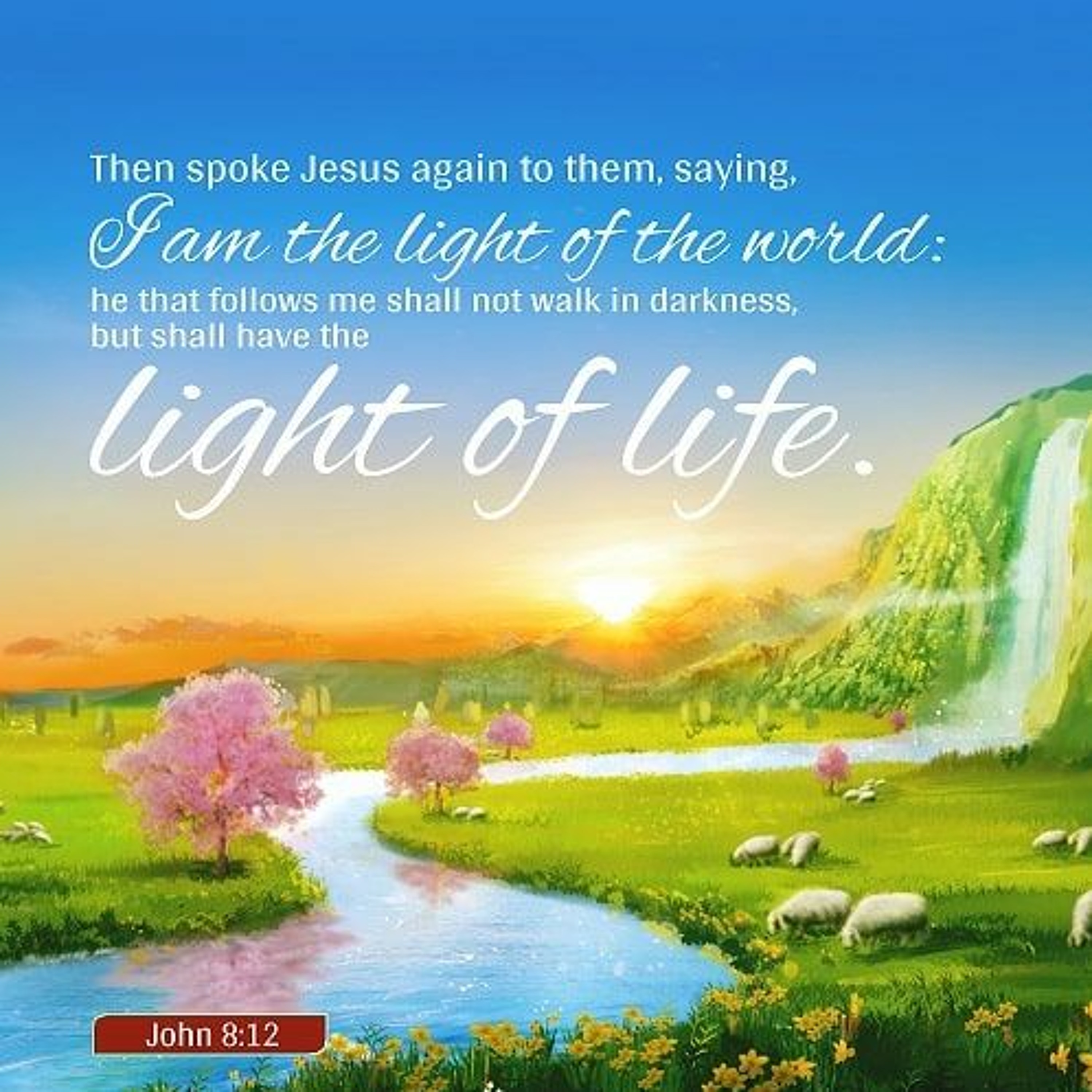 John 8:12, NASB: Then Jesus again spoke to them, saying, 'I am the Light of the world; the one who follows Me will not walk in the darkness, but will have the Light of life.'