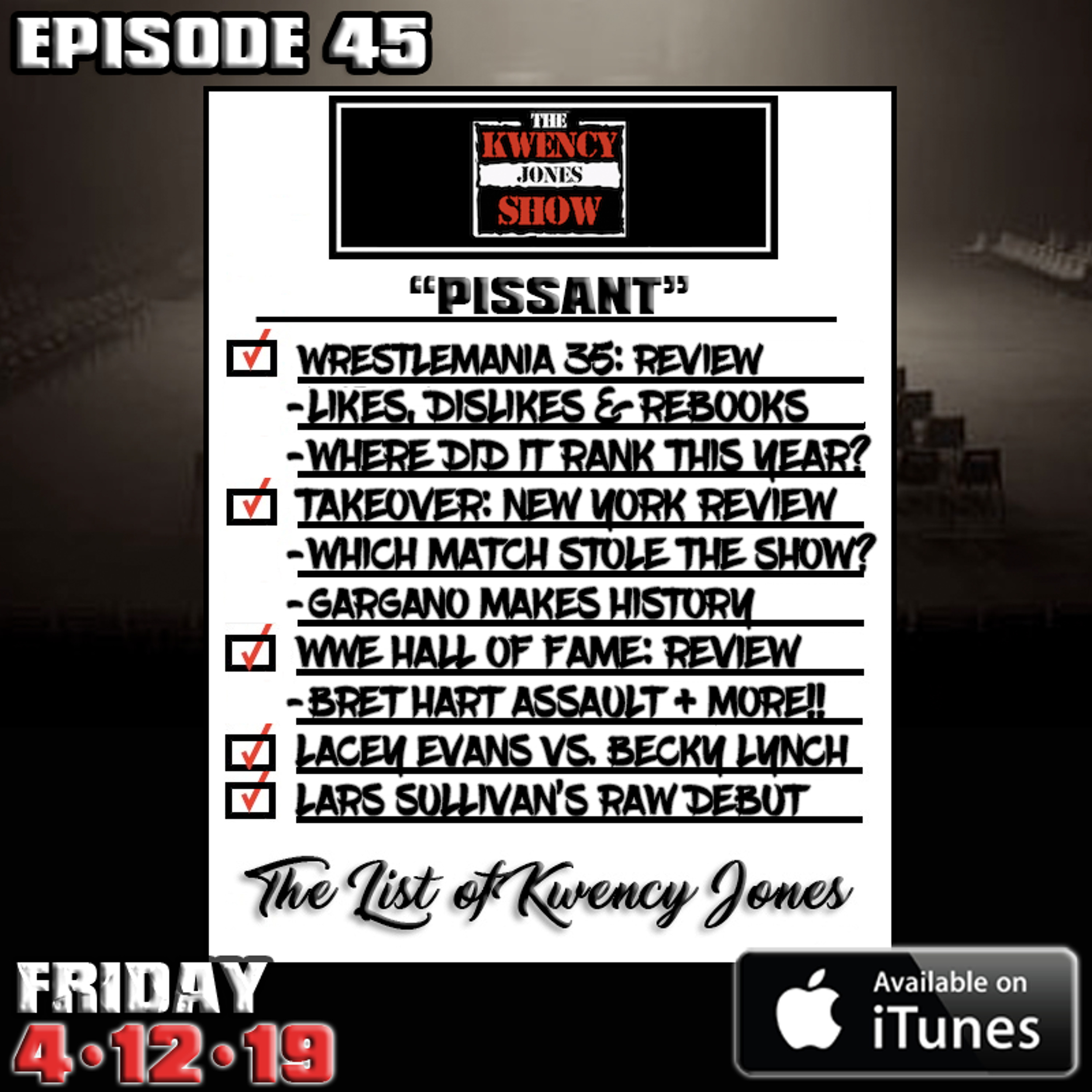 "Pissant" - It is a Wrestlemania Weekend in Review as the KJS crew compile their list of Likes & Dislikes going into the 'Show of The Immortals'. We ask how Wrestlemania 35 ranks amongst its predecessors now that the smoke has cleared, and debate if NXT Takeover: New York was a better in comparison with only five matches.. We also cover the cowardly assault on Bret Hart during the WWE Hall Of Fame ceremony, we talk whether nZo & CazXL "invading" Ring Of Honor was a work or a shoot, and discuss the debuts of Lars Sullivan & Lacey Evans, plus the return of The Undertaker on the Raw after Wrestlemania. Plus a conspiracy theory behind Batista's fall. Enjoy & Subscribe. #thekwencyjonesshow