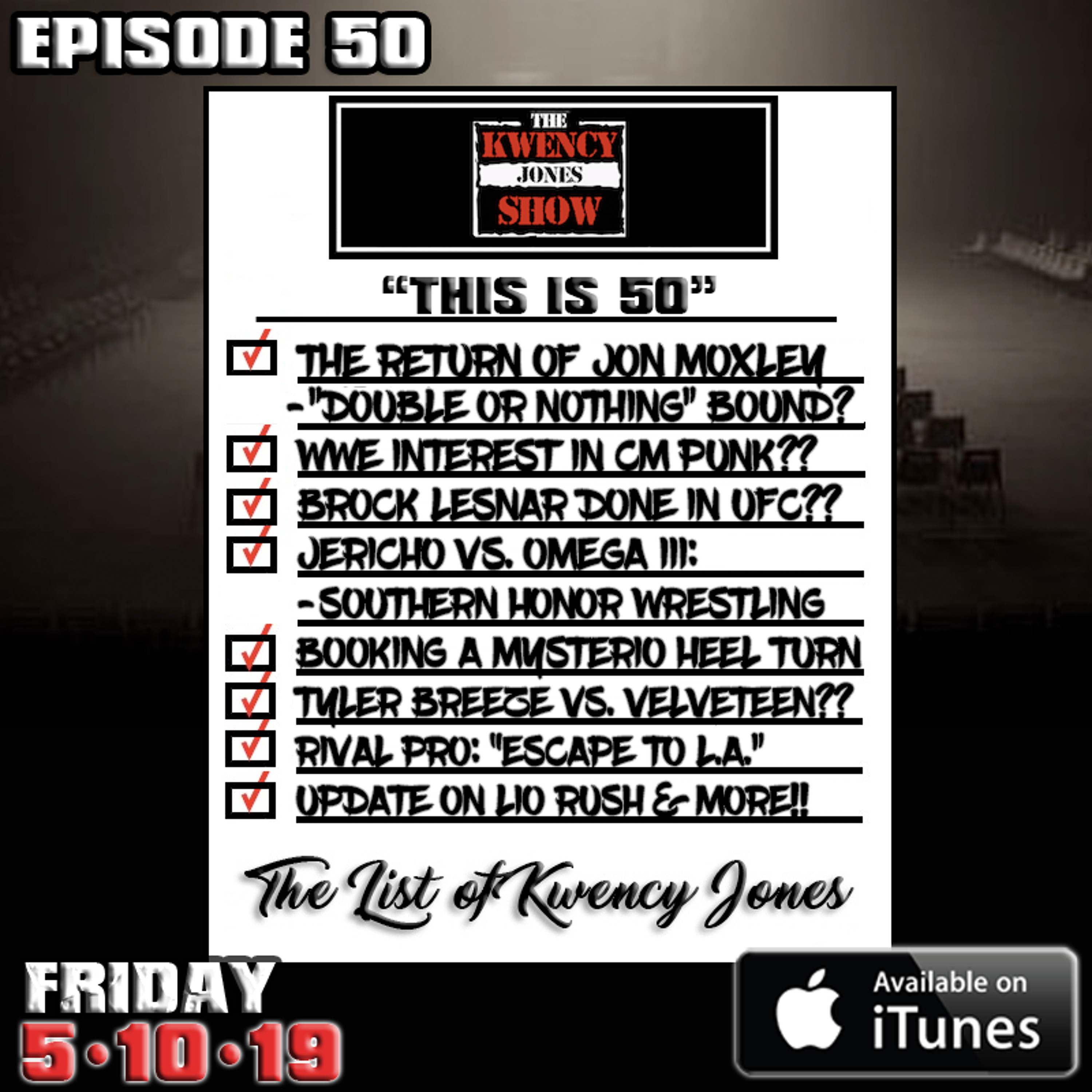 "This Is 50" - It's a full house at the Doctor's Office as the KJS crew celebrates our 50th episode!! We start off hot as we cover the return of Jon Moxley, & dissect the visual "clues" that may hint at a possible "Double Or Nothing" appearance in two weeks. We briefly address WWE's rumored interest to resign CM Punk & debate if Brock Lesnar is REALLY 'retired' from UFC. Then first we fantasy book a heel turn for Rey Mysterio, before disussing the potential of a feud between Tyler Breeze & Velveteen Dream now that he's back in NXT. Plus we provide an much needed update on Lio Rush situation & much more!! Enjoy & Subscribe. #thekwencyjonesshow