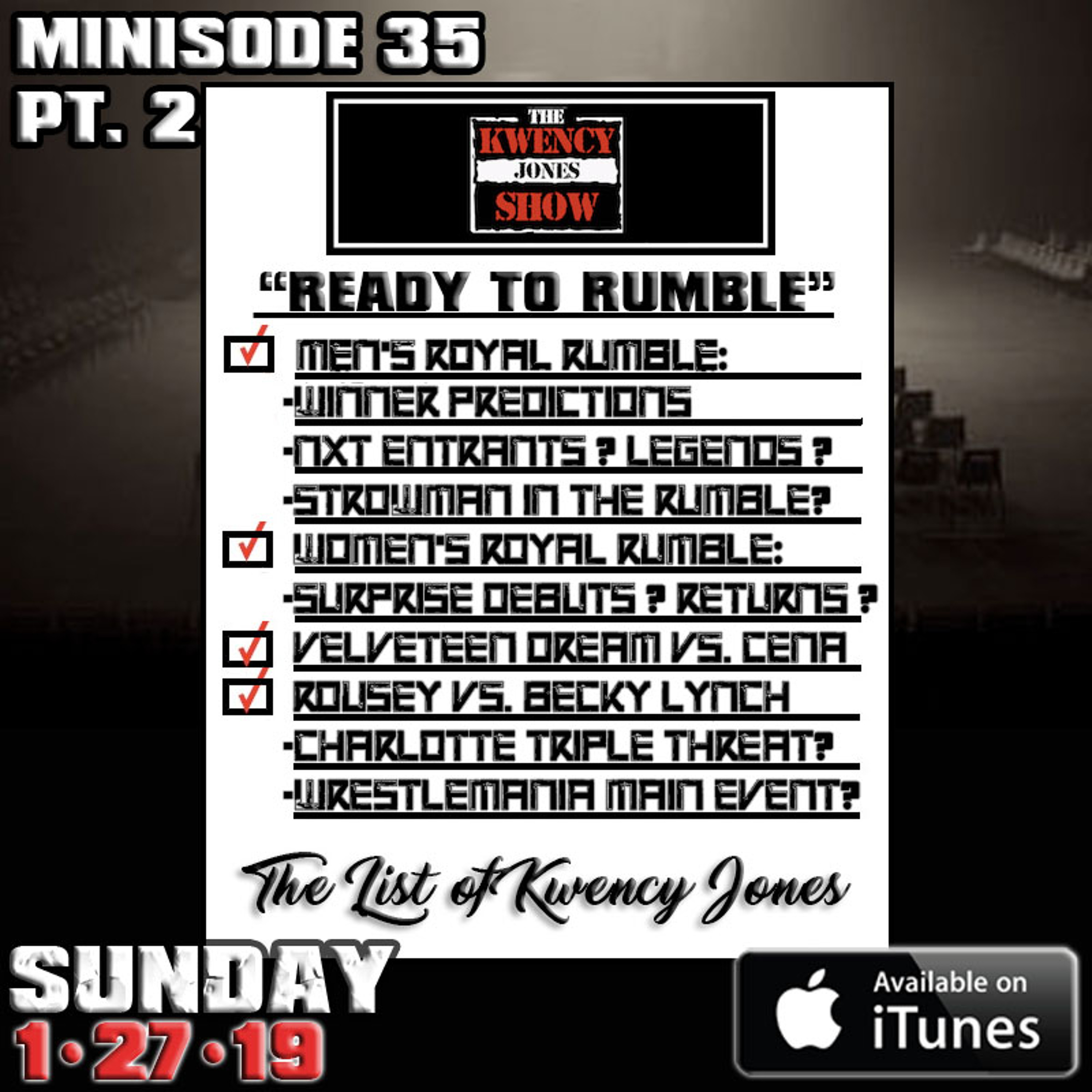 "Ready To Rumble" - Part 2 of Minisode 35 kicks off on the road as the KJS crew hit the record button while making the drive through Phoenix!! First we compare the WWE roster featured in earlier Rumbles compared to the level of competition now. We question if the WWE Universe is ready for Women to main event Wrestlemania, as we discuss the potential booking options going into both Women's Championship Matches & the Women's Royal Rumble. We question Cena & Strowman's status for the Rumble match and of course predict who from both RAW or Smackdown will win the 2019 Royal Rumble. We also predict which NXT superstars will make their debuts, which superstars will return from injury & which legends will show up for a classic Royal Rumble moment. Enjoy & Subscribe. #thekwencyjonesshow