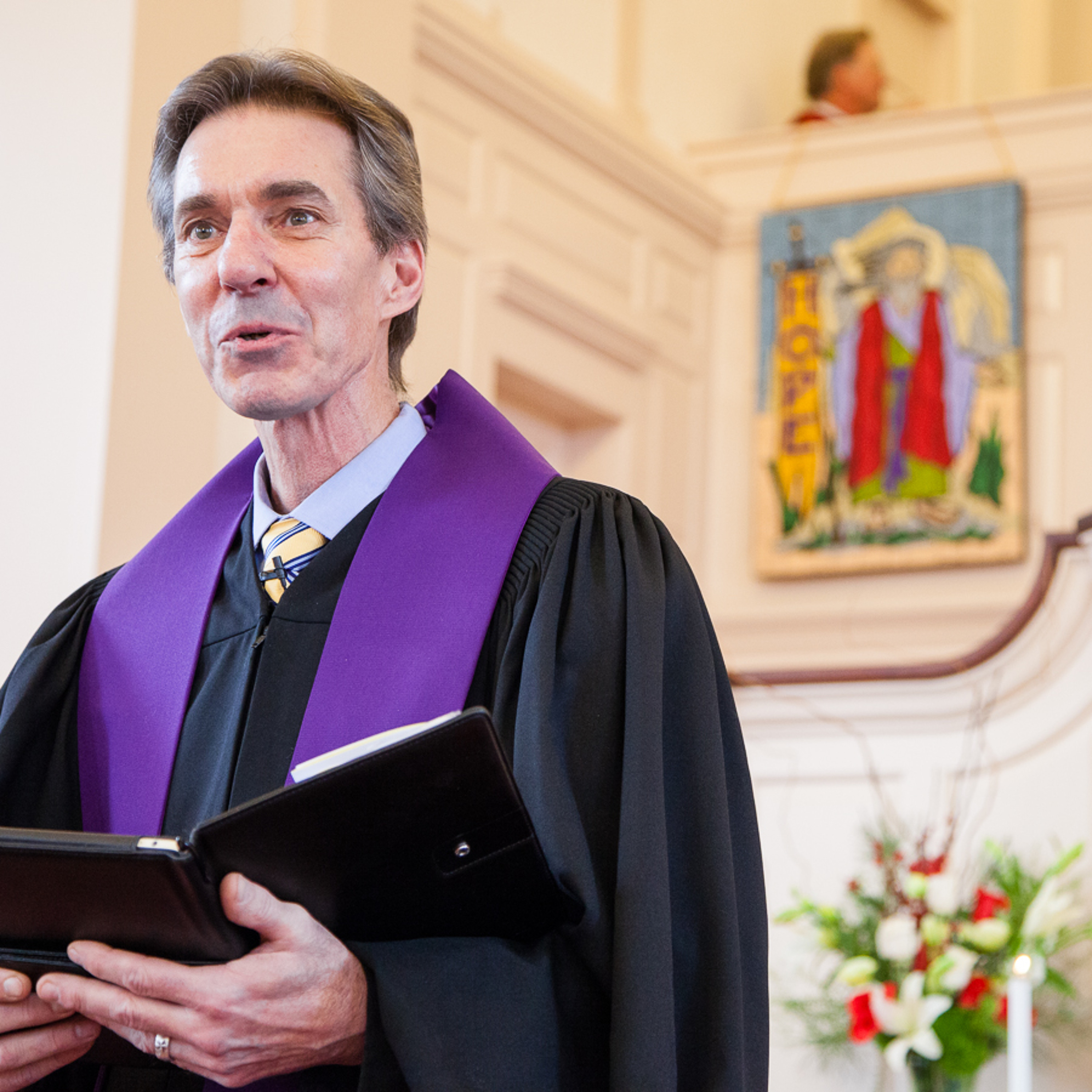 Liturgist Philip Swain reads Luke 1:68-79 and 3:2-6; Rev. Robert Brown delivers the sermon “The Clean Sweep”.