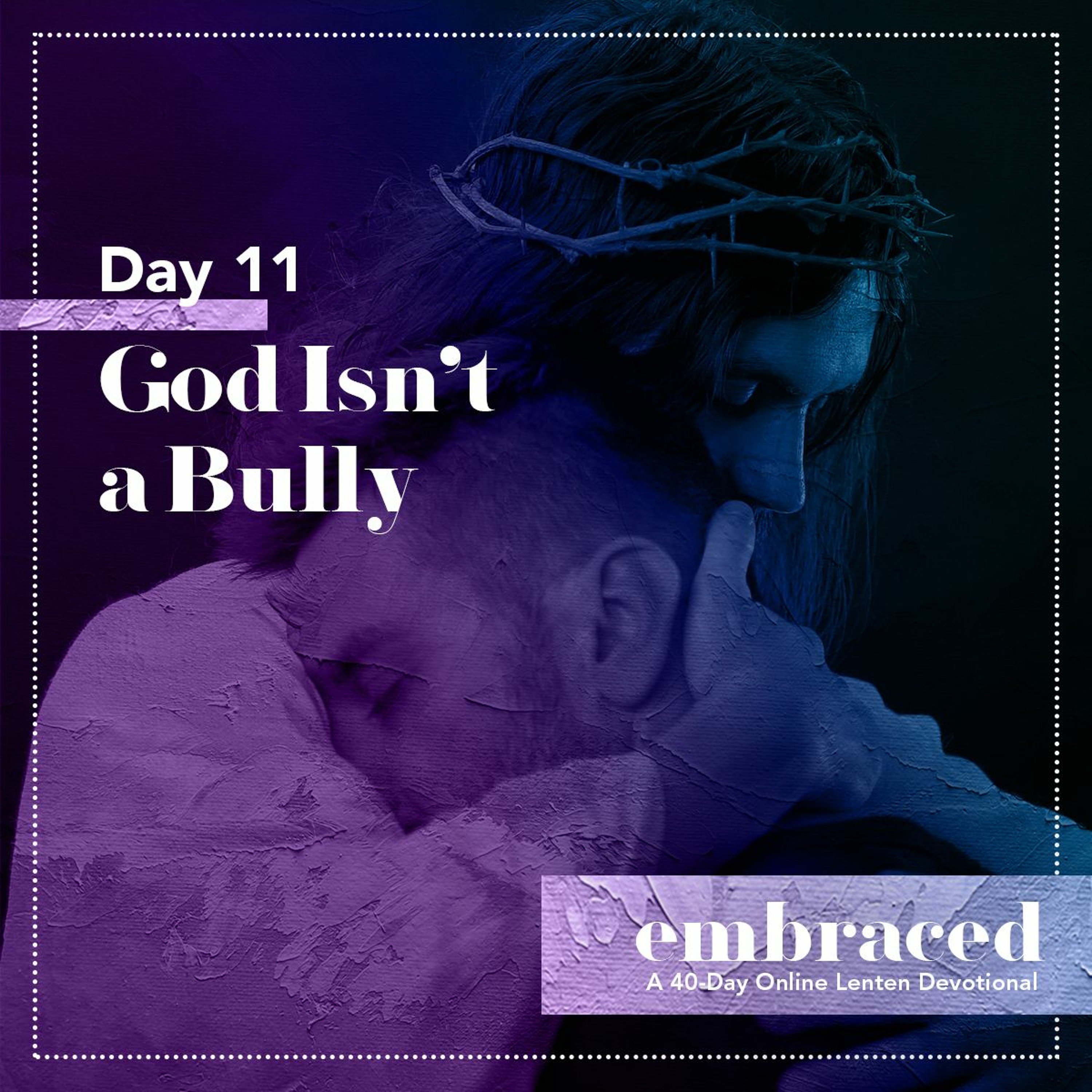 DAY 11: Are you experiencing a very difficult situation in your life right now? Do you feel down? Lost? Broken? Before God's embracing presence, it is safe to be wounded and broken. God embraces you now in your wounds. He embraces you in your weakness and brokenness. Realize that the wounding of your soul is in itself a blessing to you: to provide room for God's mercy to penetrate deeper in all areas of your life. This Lent, come as you are and let God embrace you.