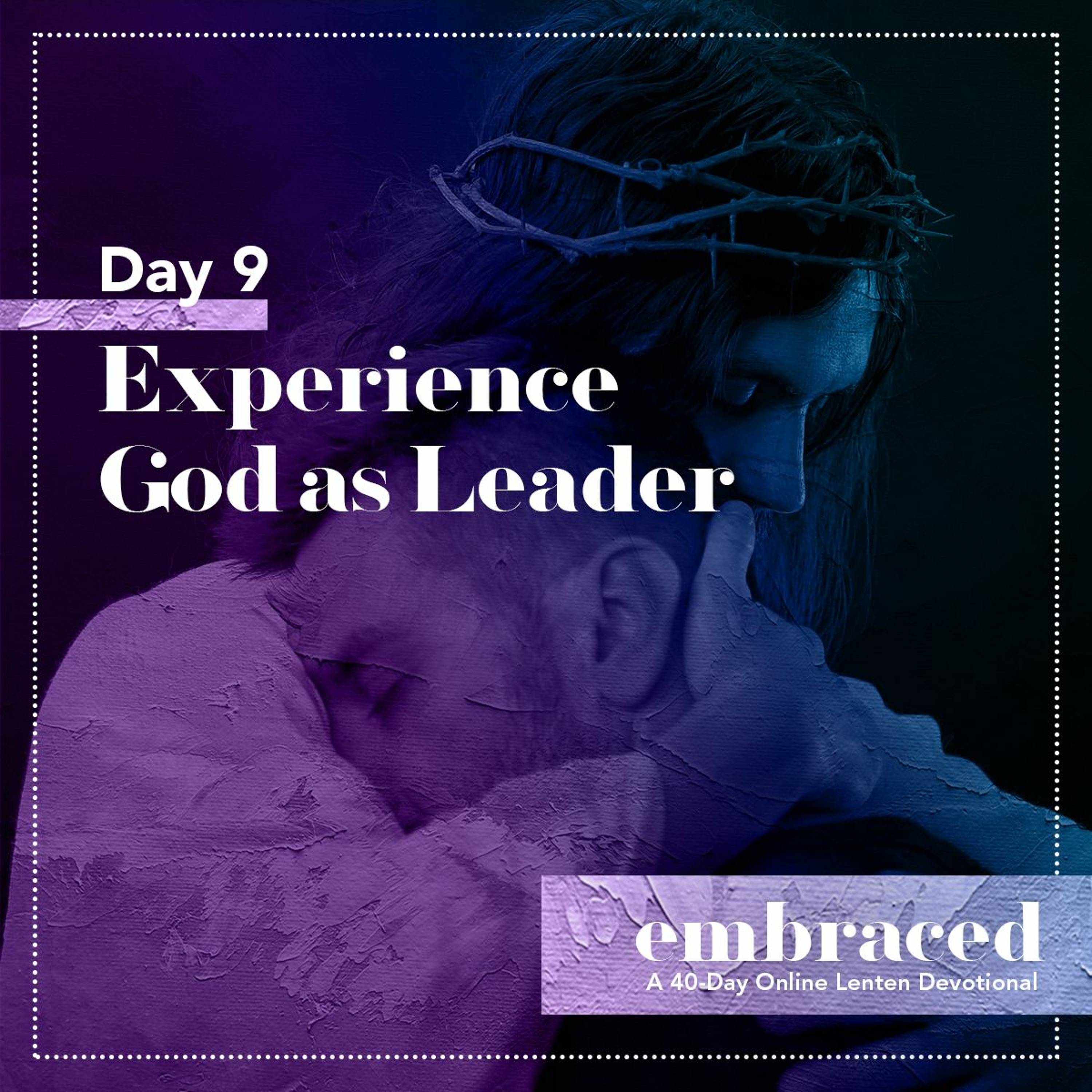 DAY 9: Now we move forward in discovering who God is as a leader. As you learn about His guidance and ways, let this be your prayer: "Bestow on my heart the gift of submission and faith, Lord. Impart to me a humble love for the spiritual mentors You have provided for me." This Lent, come as you are and let God embrace you.