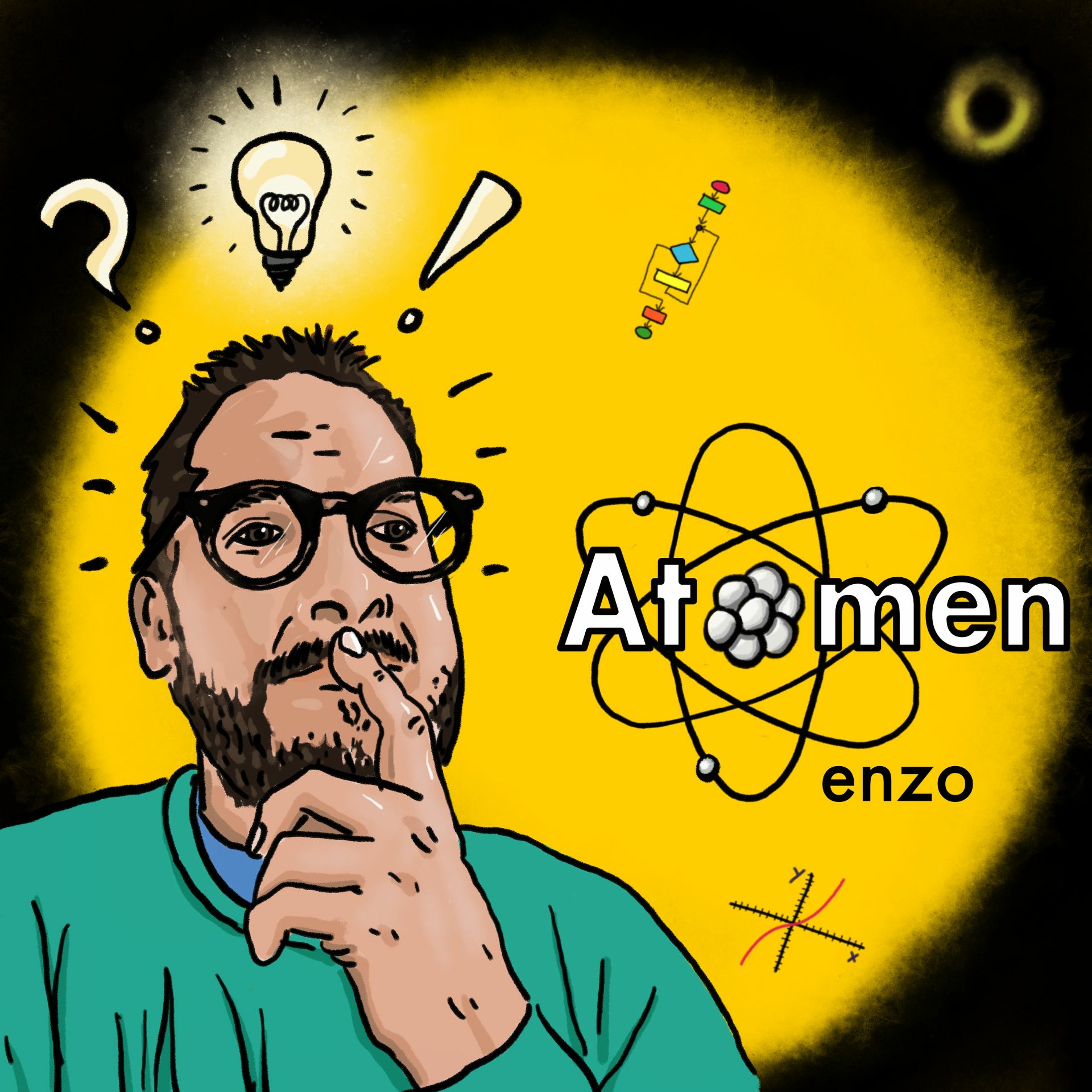 Wat zijn zwarte gaten? Waarom is fundamentele wiskunde de moeite waard? En waarom staat er kindermuziek tussen mijn aanbevelingen in Spotify? Florian Helinski werkt als storyteller op de grootste Faculteit Bètawetenschapen van Nederland zonder zelf enige kennis van bètavakken te hebben. Bij de meeste onderwerpen denkt hij dan ook: ‘Waar gaat dit over?’. In de podcast ‘Atomen enzo’ krijgt Helinski antwoorden op vragen die al lang gesteld zijn.
