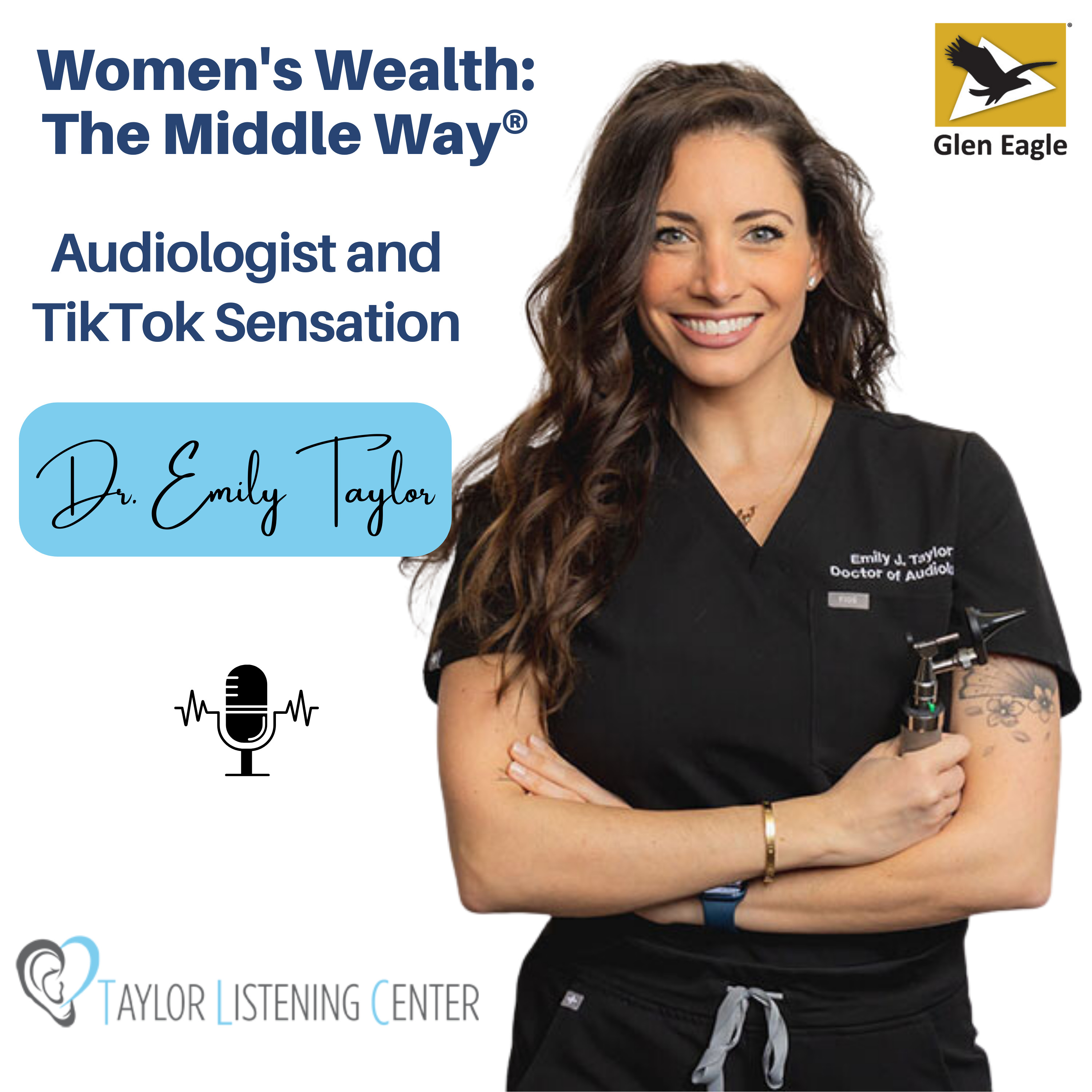 Our guest today is Dr. Emily Taylor, an audiologist and owner of in Maryland. She is better known to her one million-plus followers on TikTok as . Listen in as Emily shares how she got started on TikTok, what it's like to be an audiologist, and why it's important to keep your ears healthy and happy! #GlenEagle #WomensWealth #TheMiddleWay #DrEmilyTaylor #DrEarWax #TaylorListeningCenter #audiology #hearing Join us on the third Wednesday of each month on Women's Wealth: The Middle Way®, a radio show aimed at helping women navigate questions about work, money, and family. You can find us on your favorite podcast app, including , , , and . For podcast updates straight to your inbox, visit . See you next month! Helpful Links: Women's Wealth: The Middle Way®: Glen Eagle: Taylor Listening Center: DrEarWax: Dr. Taylor Linkedin: Disclaimer: Glen Eagle does not endorse, approve, recommend, or certify any information, product, process, service, or organization presented or mentioned in this Podcast, and information from this Podcast should not be referenced in any way to imply such approval or endorsement.