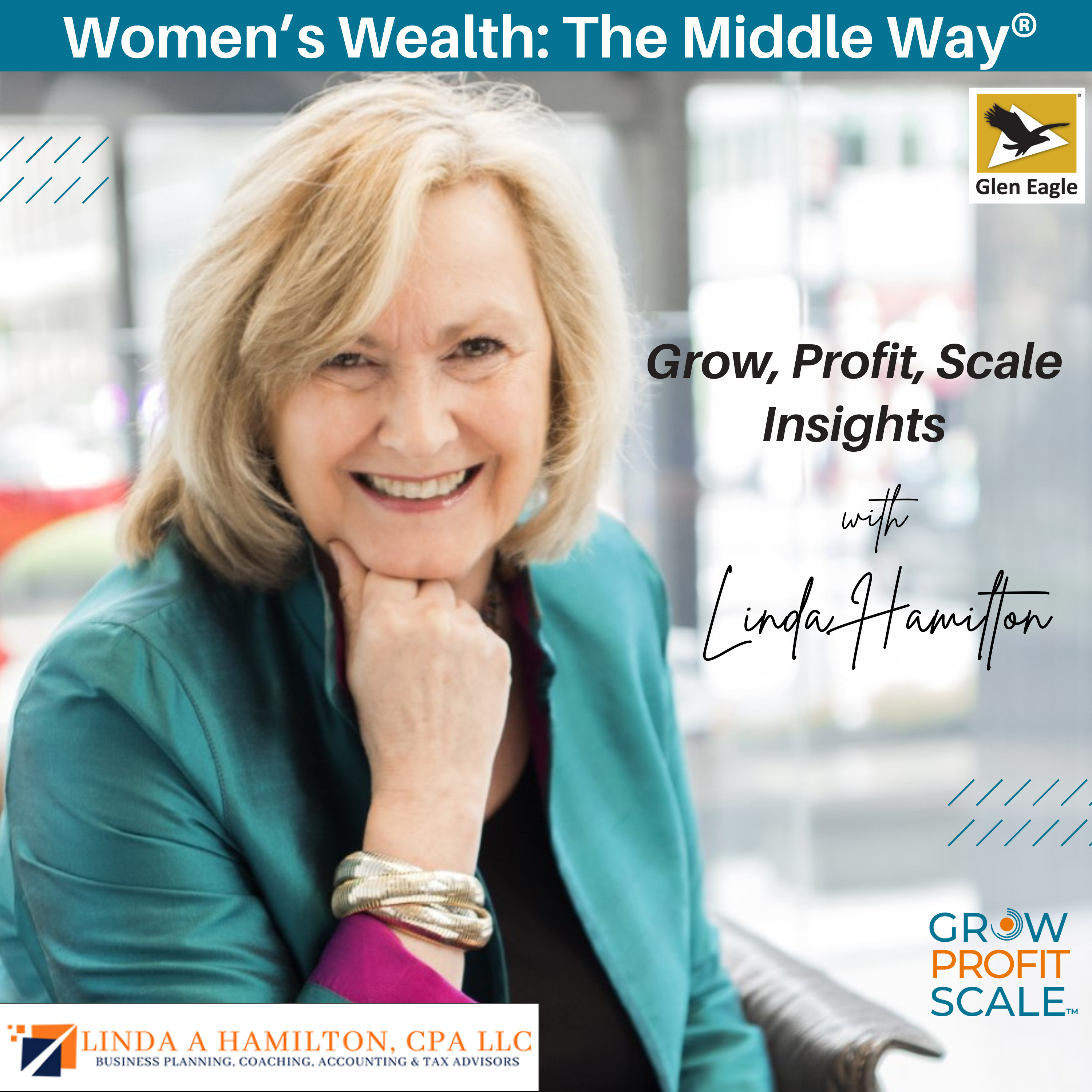 is an award-winning CPA and the visionary founder of . With her extensive financial expertise, Linda helps business owners create comprehensive growth plans focusing on strategic hiring, effective scaling, and successful business exits. Listen in as she shares practical insights to empower entrepreneurs at every stage of their business journey. Join us on the third Wednesday of each month on Women's Wealth: The Middle Way®, a radio show aimed at helping women navigate questions about work, money, and family. You can find us on your favorite podcast app, including , , , and . For podcast updates straight to your inbox, visit . See you next month! Helpful Links: Linda Hamilton: Linda A Hamilton CPA LLC: Grow Profit Scale™: Women's Wealth: The Middle Way®: Glen Eagle: WBENC: WPO: Disclaimer: Glen Eagle does not endorse, approve, recommend, or certify any information, product, process, service, or organization presented or mentioned in this Podcast, and information from this Podcast should not be referenced in any way to imply such approval or endorsement.