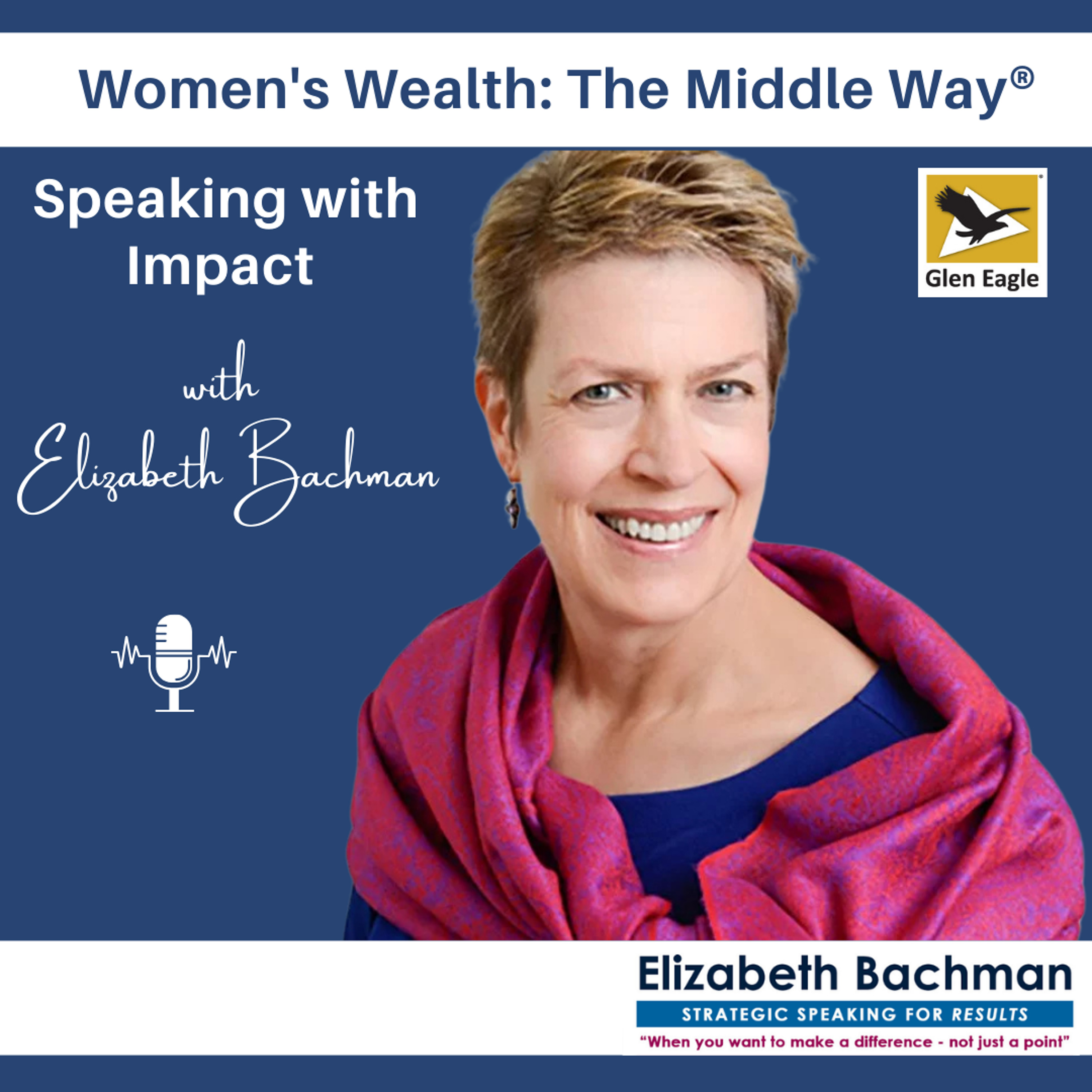 Today, our special guest is , CEO of Speaking with Impact. After a successful career directing international opera, Elizabeth helps leaders speak with authority and impact. She joins us today to share powerful strategies that help women confidently communicate and command the respect they deserve. Join us on the third Wednesday of each month on Women's Wealth: The Middle Way®, a radio show aimed at helping women navigate questions about work, money, and family. You can find us on your favorite podcast app, including , , , and . For podcast updates straight to your inbox, visit . See you next month! Helpful Links: Elizabeth Bachman: WBENC: Women's Wealth: The Middle Way®: Glen Eagle: Disclaimer: Glen Eagle does not endorse, approve, recommend, or certify any information, product, process, service, or organization presented or mentioned in this Podcast, and information from this Podcast should not be referenced in any way to imply such approval or endorsement.