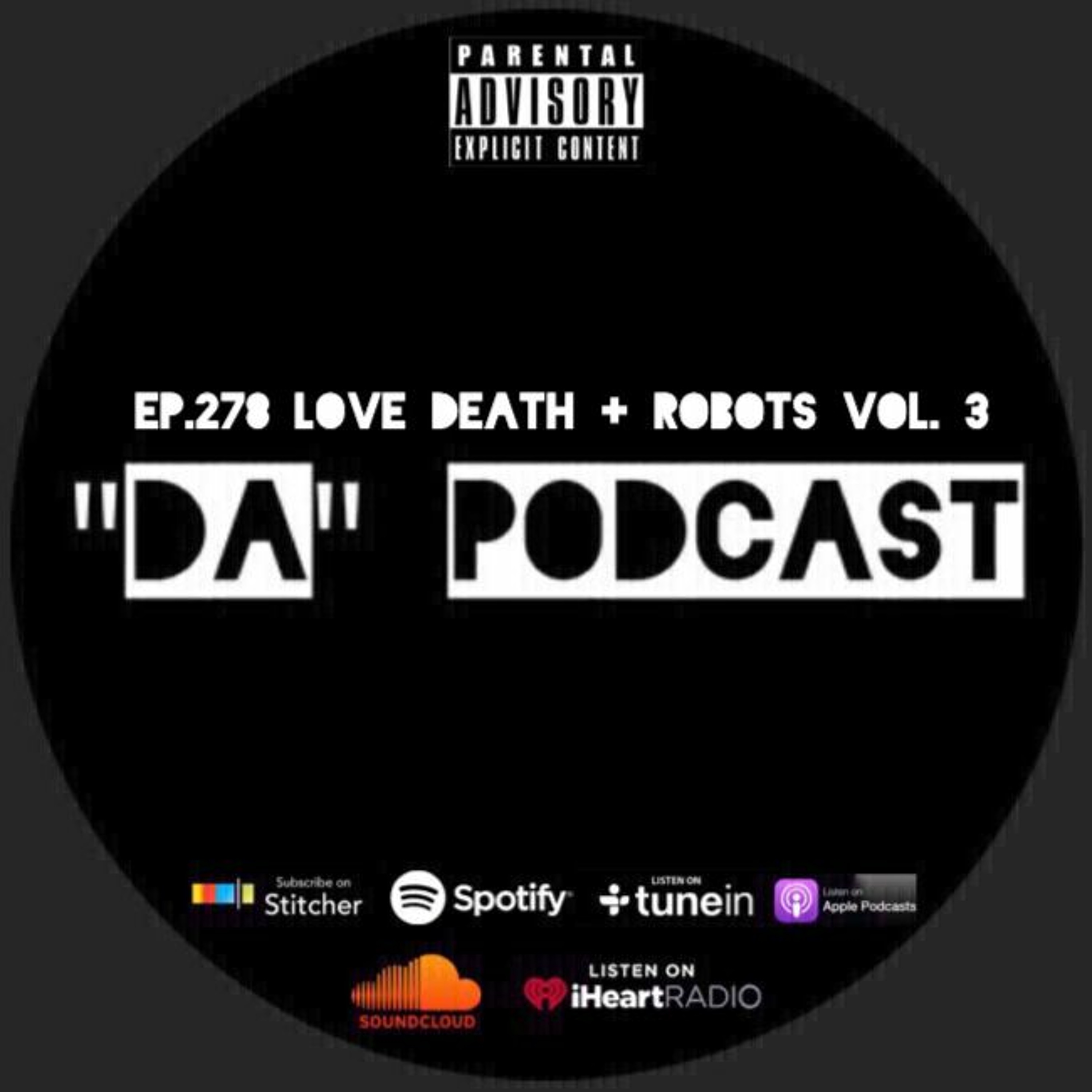 On this weeks episode of “Da” Podcast, Steve is joined once again by Benjamin Banks & Trav from Levelling Up for a special simulcast episode as they review Volume 3 of Netflix’s Love Death + Robots. They also talk about white sauce, appearing at Cons, cosplaying, Sci-Fi movies, video games, creating a new language, “The Weird Story of The Week”, and so much more!