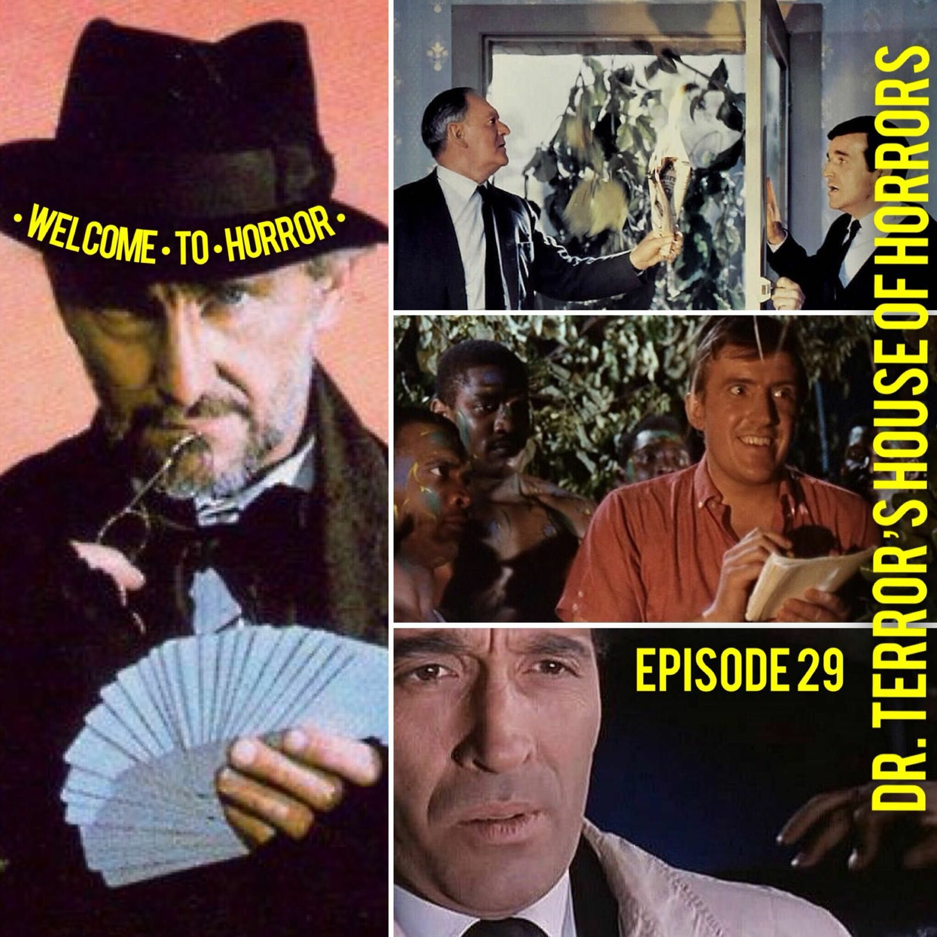 We take a trip to Dr Terror’s House of Horrors where Neil McCallum encounters a hairy heiress; James Bond’s boss and Fluff Freeman fight a killer plant; Roy Castle and Kenny Lynch chase the Voodoo down; Michael Gough makes a monkey out of Christopher Lee and Donald Sutherland allows an armed maniac to sit in a sleeping child’s room.
