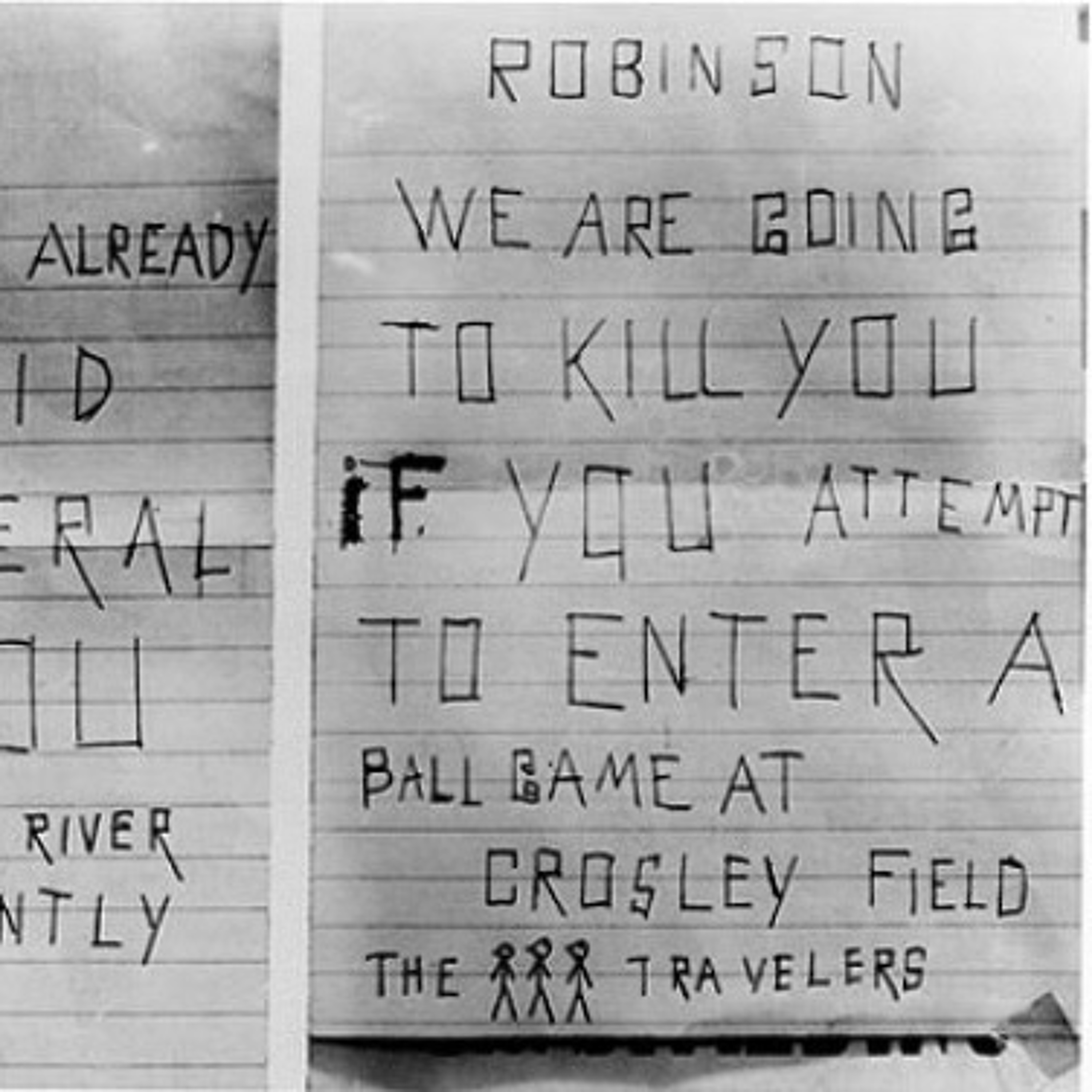 Robinson made his debut for the Dodgers, going 0-3 that day. Many Dodger fans and even some players were conflicted about supporting an African American player trying to integrate one of America’s most beloved institutions. Dodgers announcer Red Barber famously considered quitting his dream job over calling a game with an African American player, as stated in an interview shortly before his death. Everywhere Robinson went, there were threats made by opposing players and fans, and when the team traveled south he was forced to face state-sanctioned segregation on buses, in hotels, and even at the ballpark. A 1951 letter sent to the Cincinnati Reds said “ROBINSON WE ARE GOING TO KILL YOU IF YOU ATTEMPT TO ENTER A BALLGAME AT CROSLEY FIELD.” Nevertheless, Robinson played through these hardships, earning Rookie of the Year honors in 1947 and National League MVP in 1949. He helped the Dodgers to a World Series Title in 1955.