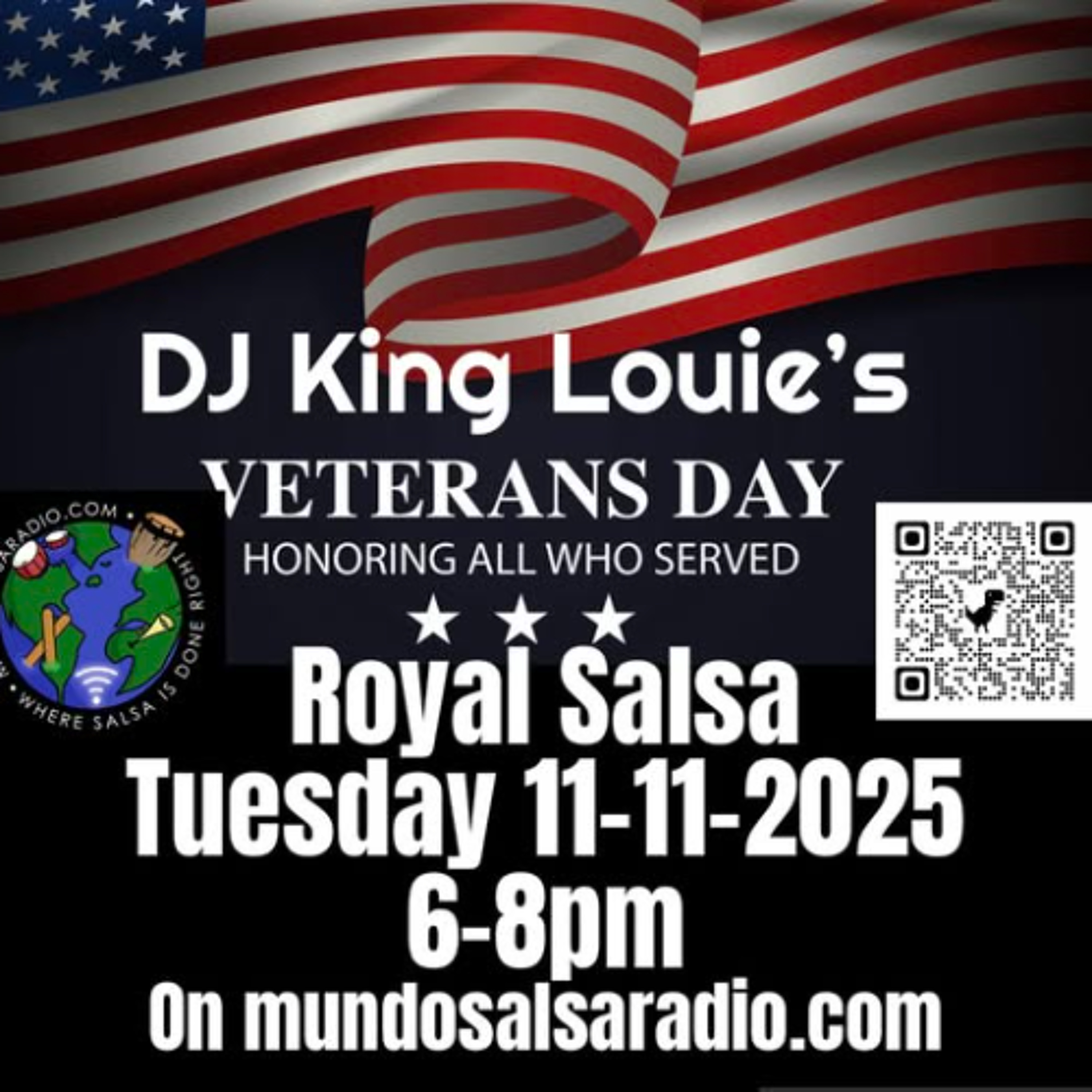 Weekly Show, "DJ King Louie's Royal Salsa", Show #365, 11-11-2025 Veterans Day! Every Tuesday 6-8pm on mundosalsaradio.com Hosted & Mixed by DJ King Louie Vazquez! Playing New & Classic Salsa, & (Occasional, EXCLUSIVE, DJ King Louie "SALSAFIED" MashUps!) enjoy & Please Share & Re-Post This Podcast my Royal Family!! Help Spread the good word! Thank you for the LOVE!! Dakle DURO Baby!! Hand Salute to ALL Veterans!!