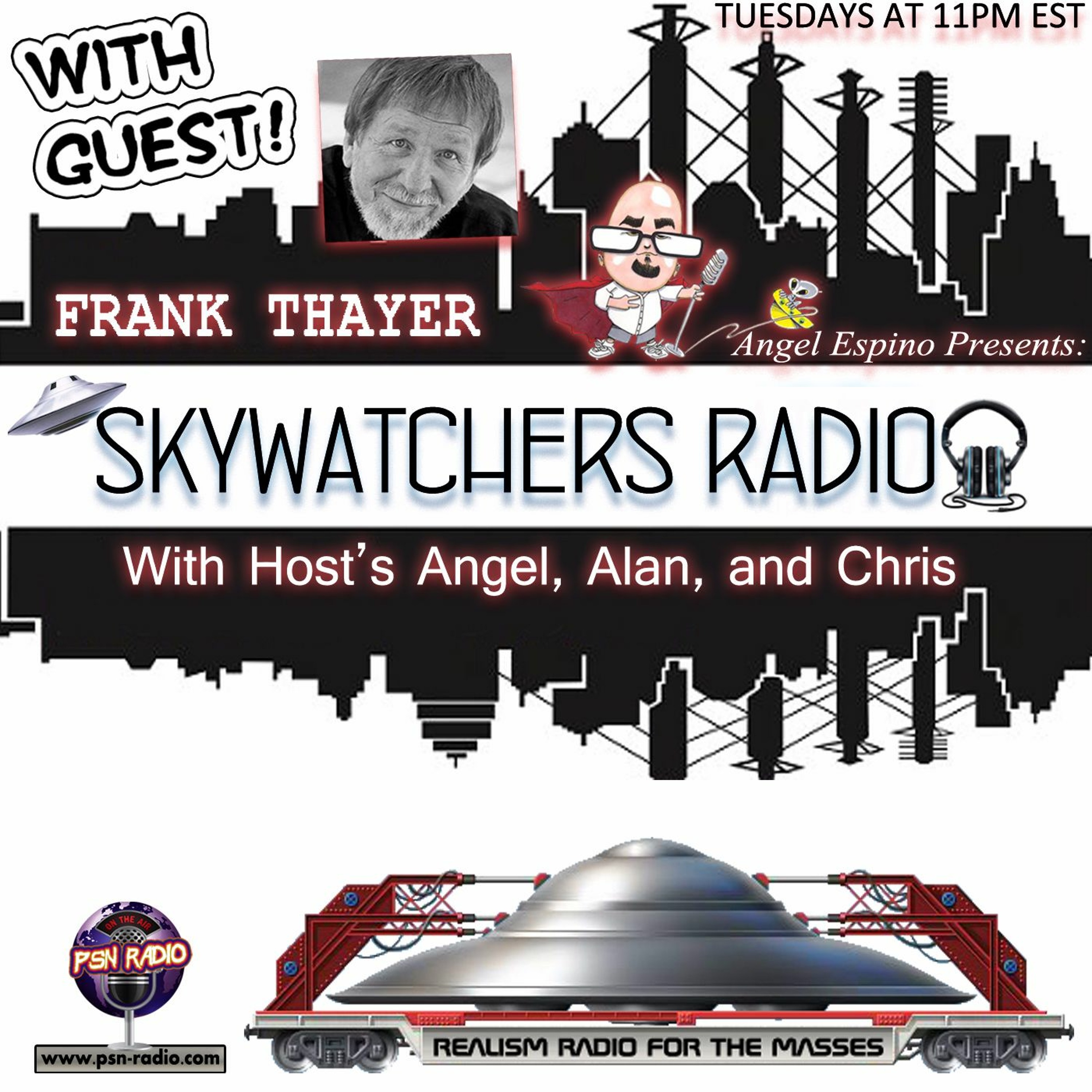New night! New times! Same show! Skywatchers Radio is on Tuesdays now at 11pm est. And with our first show on the new night we wanted to welcome the one, and only Frank Thayer to the show.