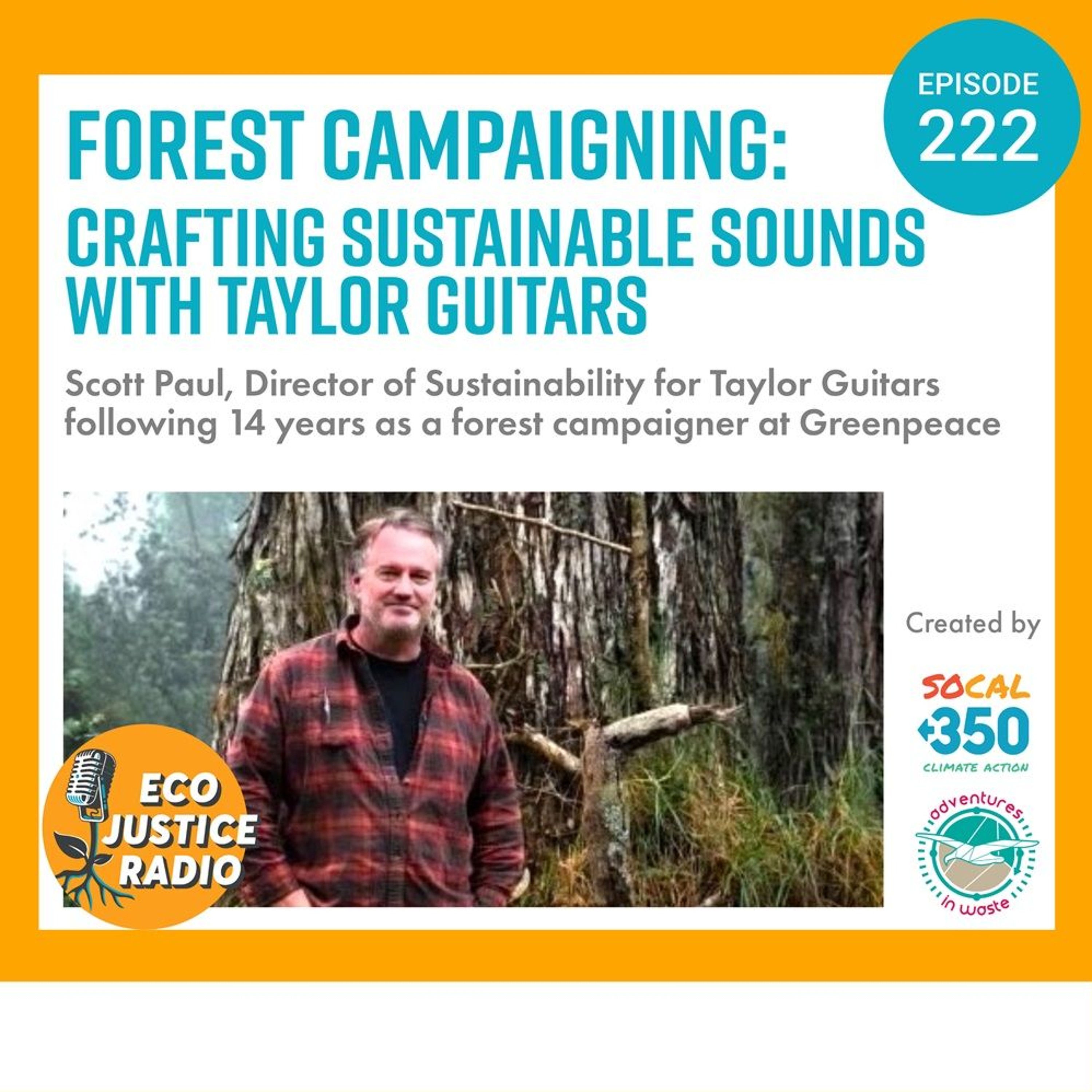 Scott Paul is Taylor Guitar’s Director of Sustainability [https://www.taylorguitars.com/about/sustainability]. Prior to this, the majority of his career was spent as a forest policy specialist and activist, including 14 years at Greenpeace. Scott has worked for The White House Office on Environmental Policy, participated in the UN forest policy dialogue since 1995, and has served on multiple boards of directors, including the Forest Stewardship Council. His work has taken him to the Amazon, the Congo Basin, Southeast Asia, the Canadian boreal, Alaska, and the Russian Far East. He is also the first person in over 100 years to have been arrested for Sailormongering.