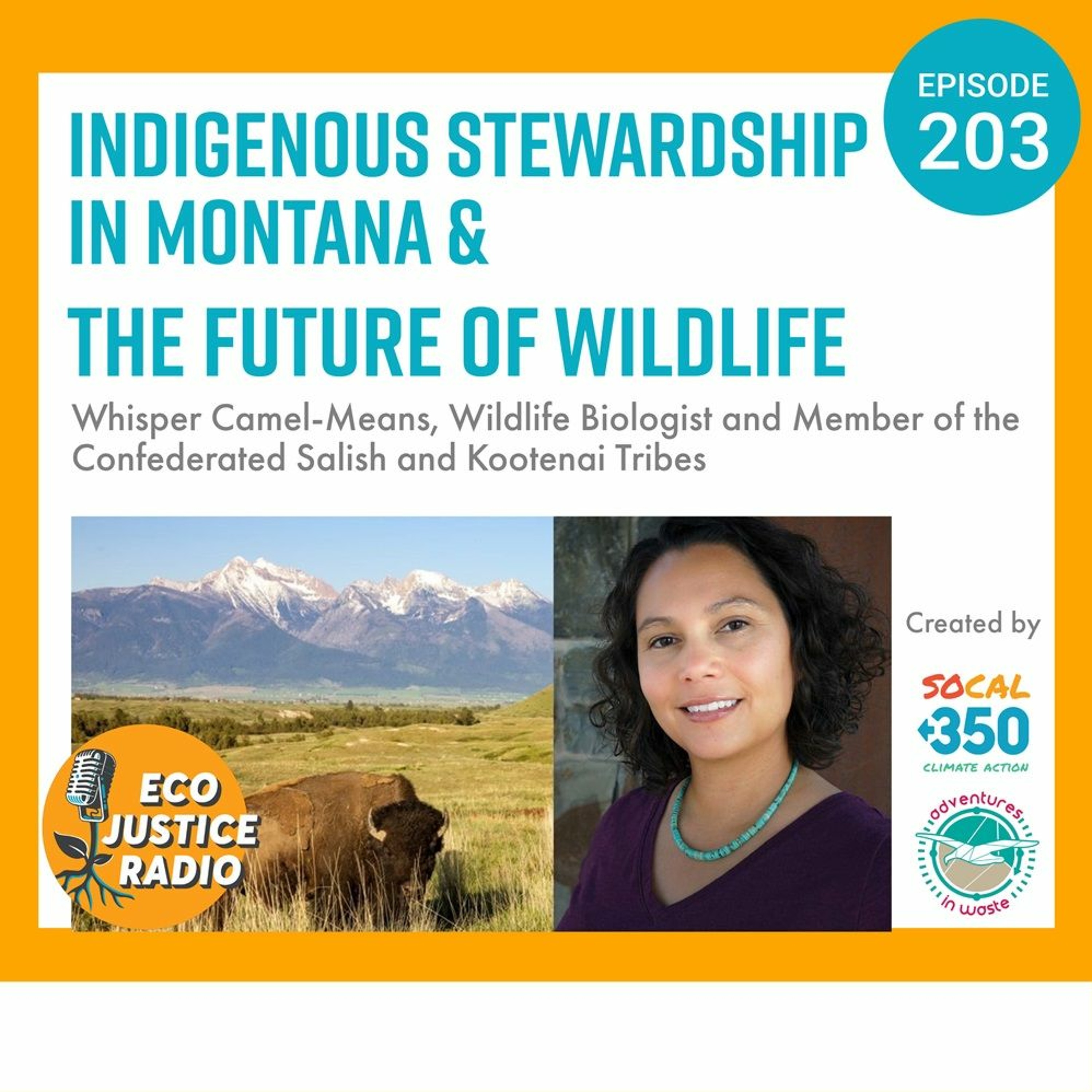 Whisper Camel-Means is the Division Manager of the Division of Fish, Wildlife, Recreation and Conservation in the Natural Resources Department for the Confederated Salish and Kootenai Tribes on the Flathead Reservation [https://csktribes.org/] in Western Montana. She is a wildlife biologist by training and now an administrator over multiple disciplines including restoration of the Bison Range for the Tribes [https://bisonrange.org/about/]. She works on outreach projects and climate change planning. She is an enrolled tribal member of the Confederated Salish and Kootenai Tribes.