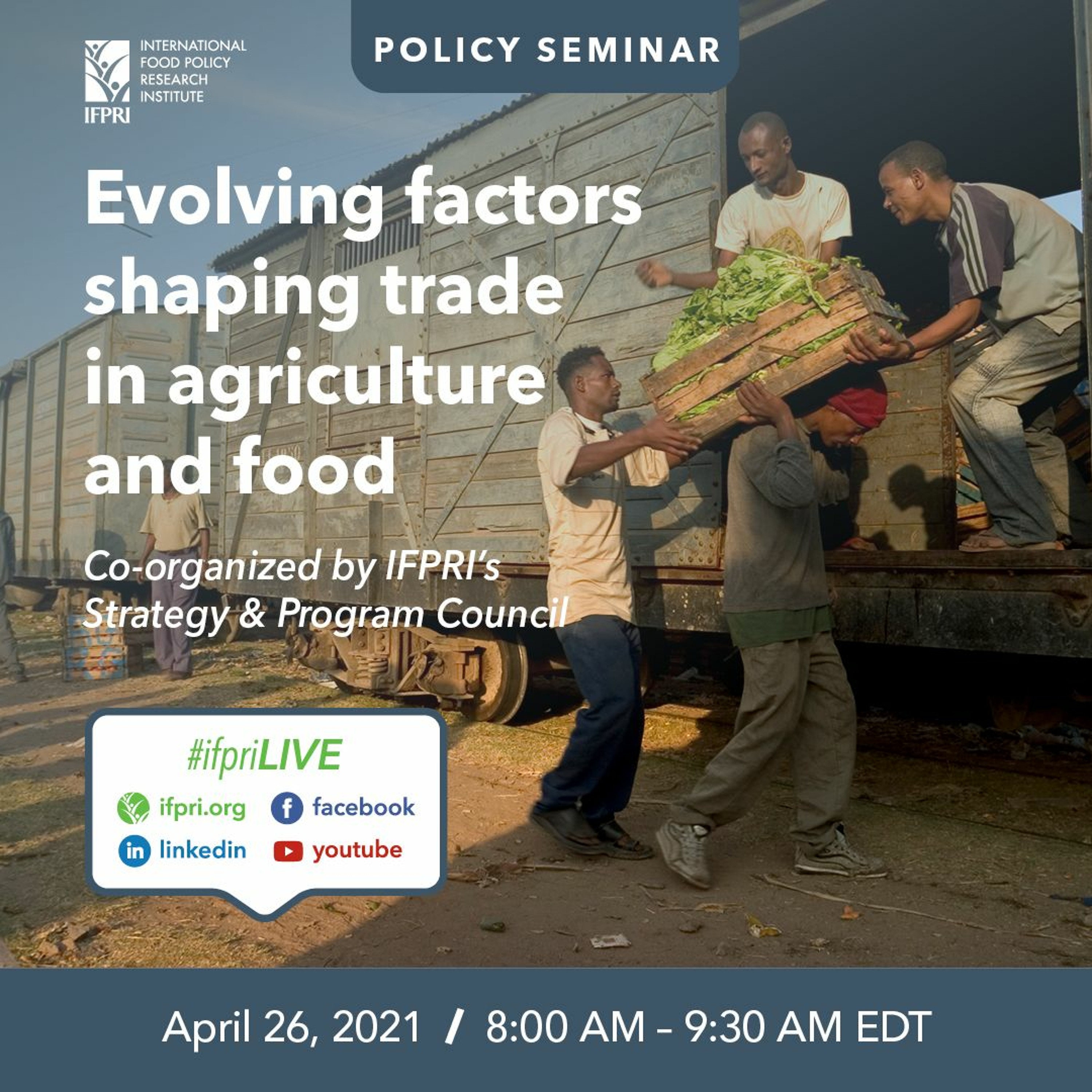 More on the seminar: https://www.ifpri.org/event/evolving-factors-shaping-trade-agriculture-and-food