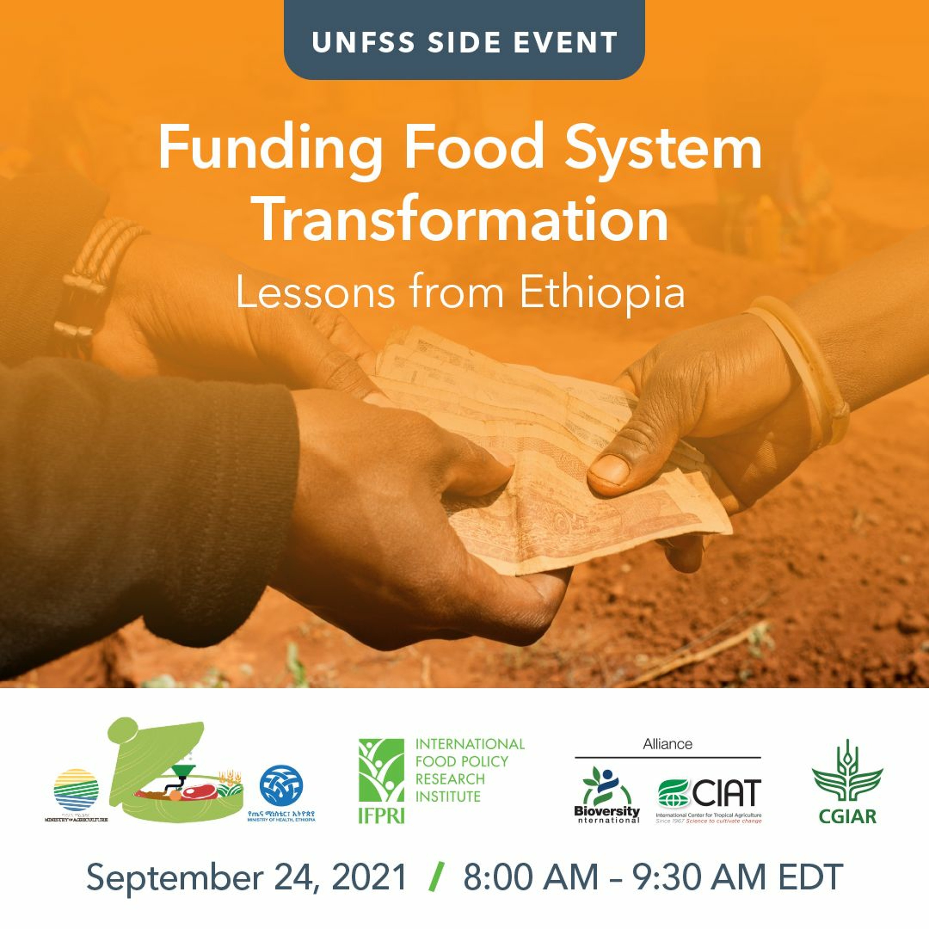 As countries develop national plans for food systems transformation, serious efforts are needed to mobilize the financial resources for design, implementation, and M&E. Ethiopia’s national plan, developed through Ethiopia’s UNFSS process, offers a valuable example of the evidence-based plans, investments, and activities that will require funding. This case will inform discussion of CGIAR work, developed for the UNFSS, on potential sources of funding for food system transformation activities. Specific examples to be discussed include mobilizing impact investors for climate change financing using CGIAR technologies; increasing access to finance for women in food systems; and using IMF issues Special Drawing Rights to guarantee zero hunger and pandemic recovery bonds.