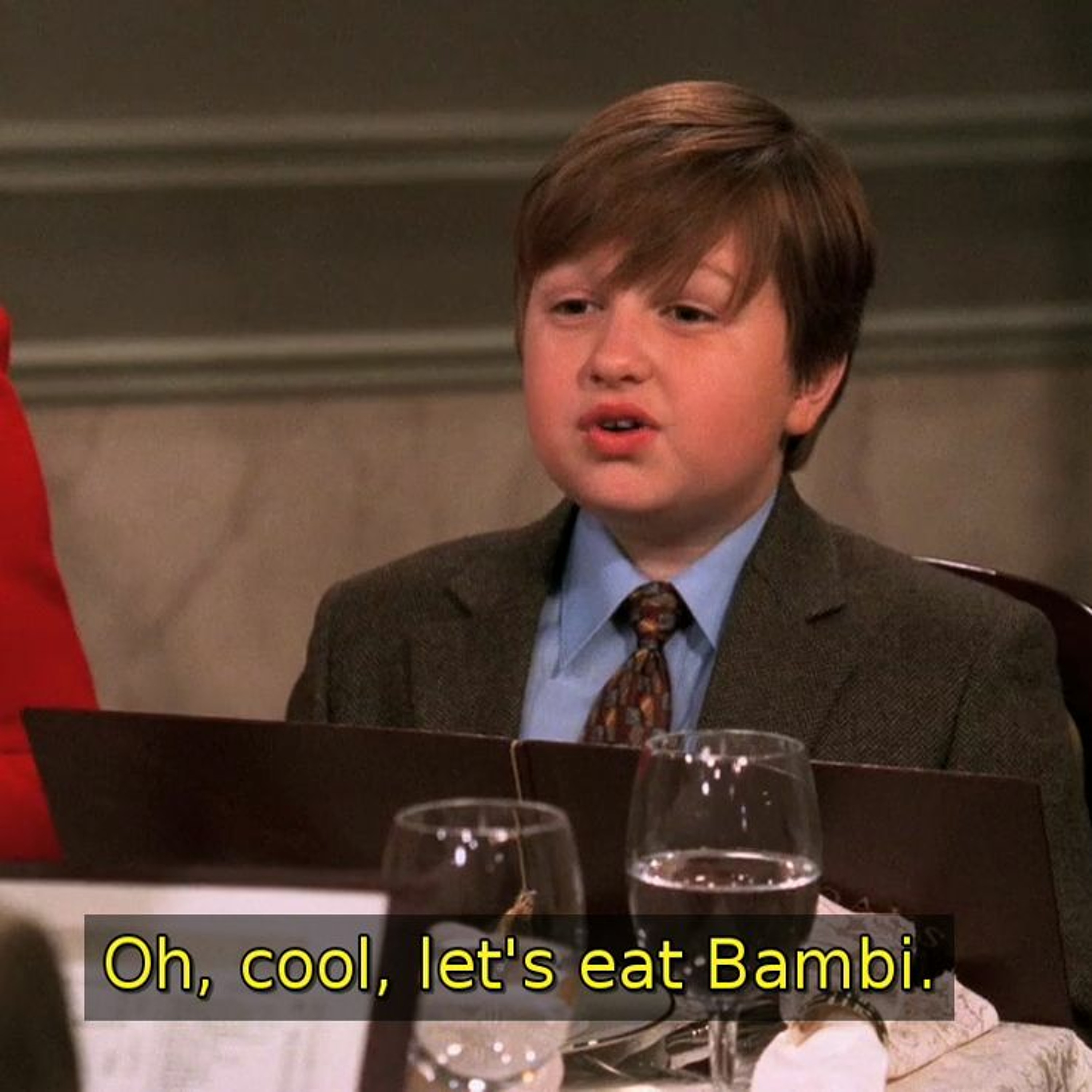 Do you see anything you like? I don't know. What's venison? - Deer. - What? - Deer. - What? Deer. D-E-E-R. What? W-H-A-T. What's wrong with him? Jake, it's... It's the deer in the forest, like... Like Bambi. Oh, cool, let's eat Bambi. Coming soon to pay-per-view.