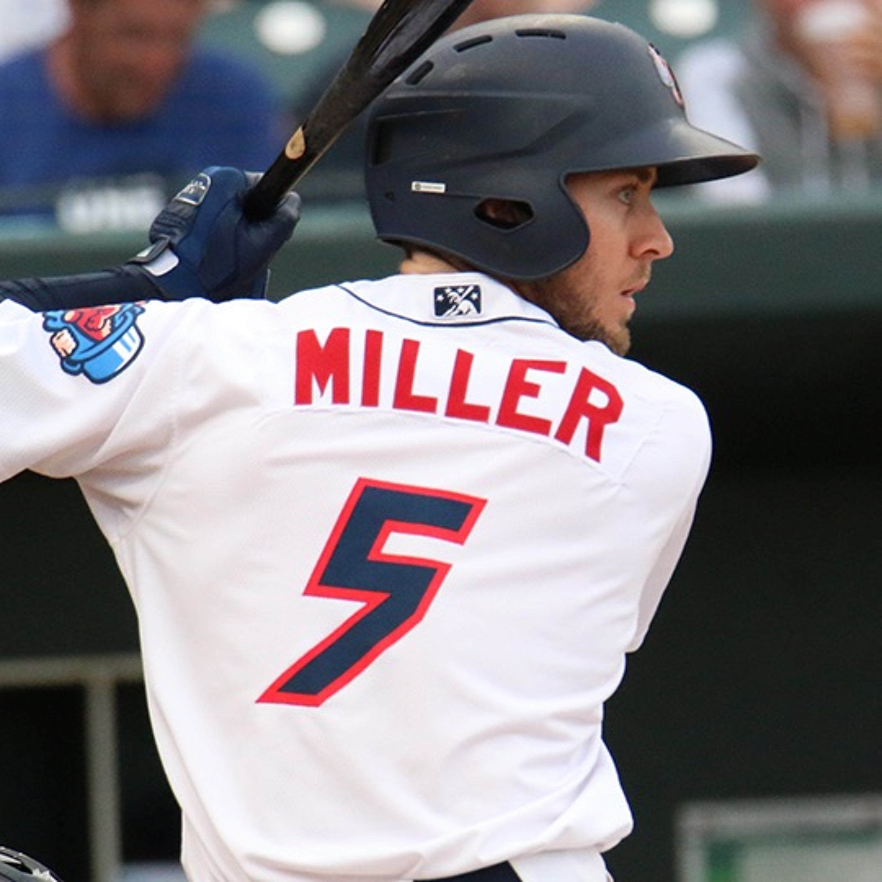 Roger Hoover interviews Jumbo Shrimp outfielder Brian Miller in Biloxi on April 22, 2019.