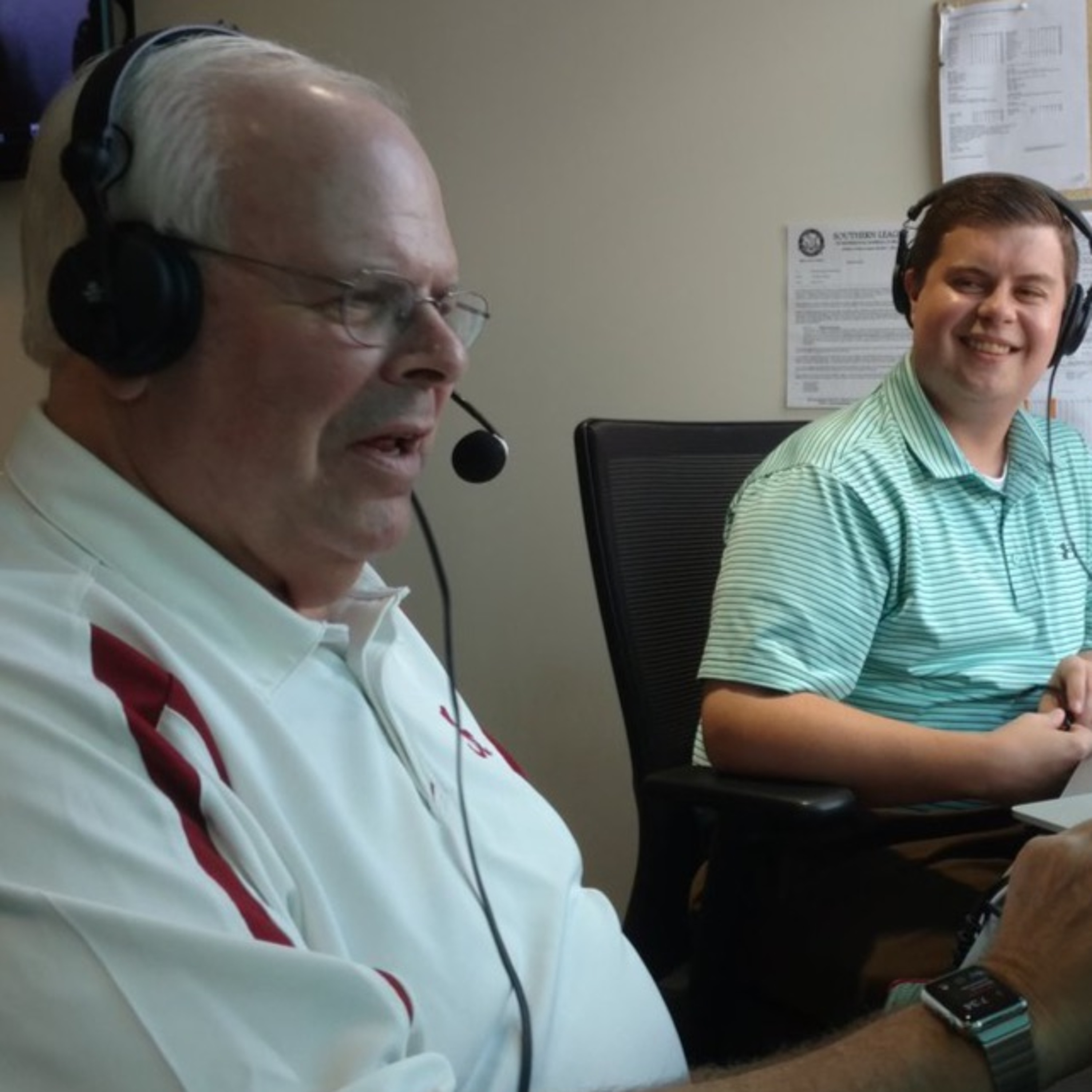 Roger Hoover visits with former Birmingham Barons broadcaster and the Voice of Alabama Crimson Tide football, Eli Gold, in Birmingham on June 7, 2018 at Regions Field. This interview was recorded during second and third innings of Jacksonville's game at Birmingham.