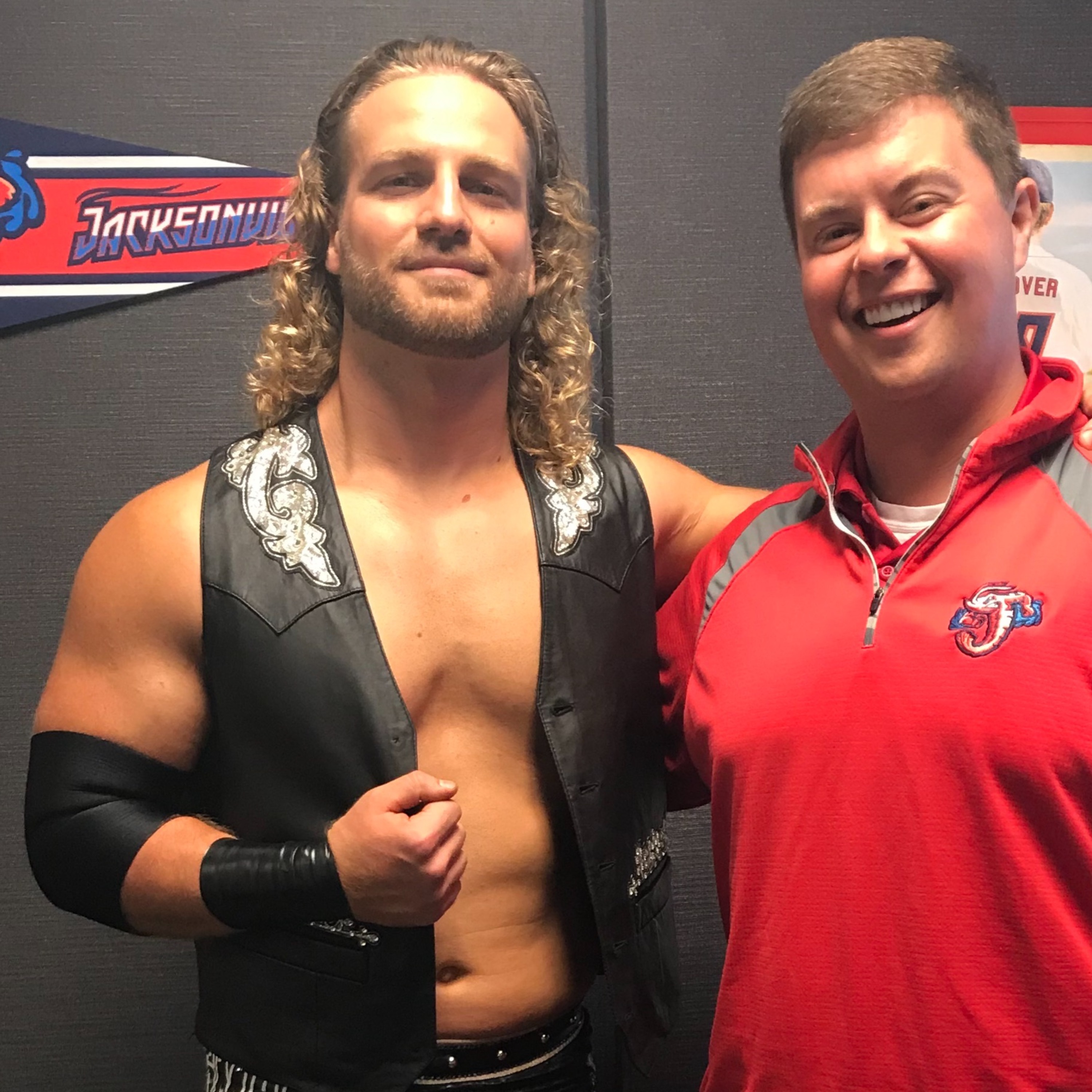 Roger Hoover interviews "Hangman" Adam Page from All Elite Wrestling at the Baseball Grounds of Jacksonville on July 12, 2019.