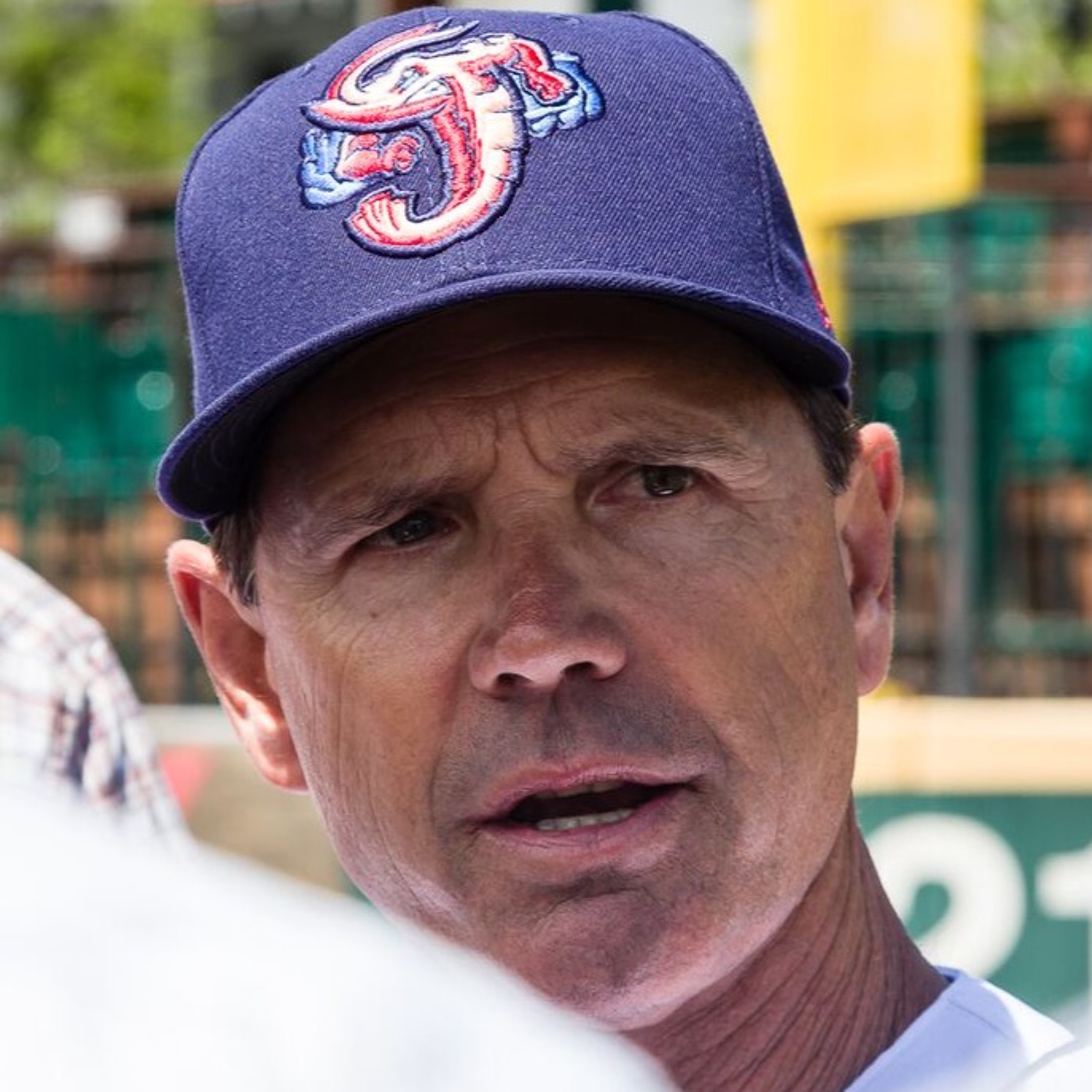 Roger Hoover interviews Jumbo Shrimp manager Randy Ready in Chattanooga prior to the Lookouts series on July 13, 2017.