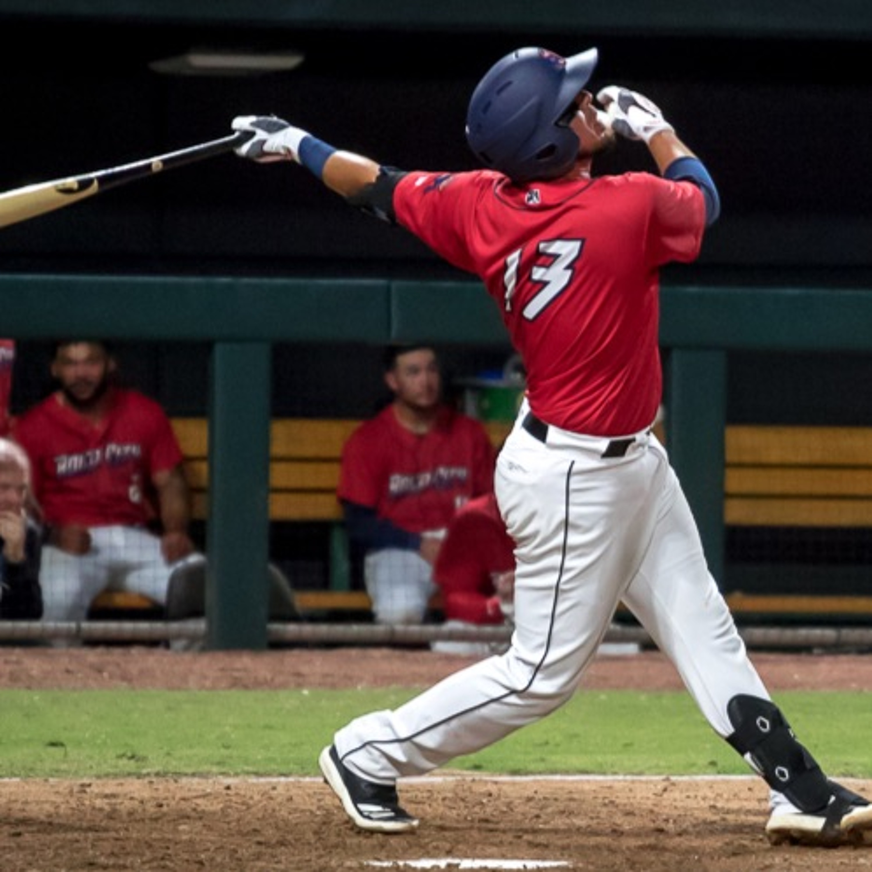 Roger Hoover interviews Jumbo Shrimp catcher Santiago Chavez in Mobile on May 7, 2019.