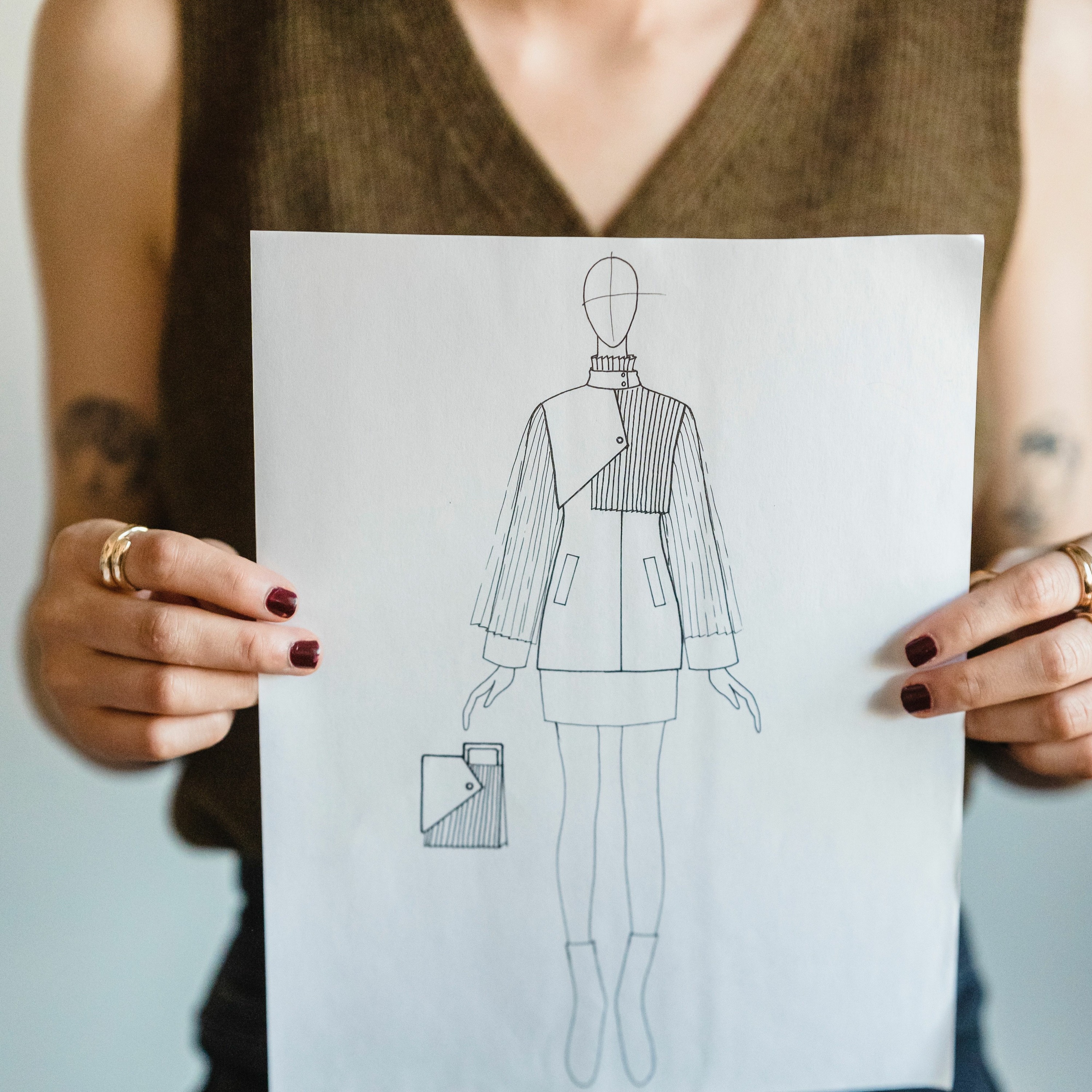 Image: https://www.pexels.com/photo/anonymous-woman-showing-sketch-of-trendy-stylish-outfit-7148032/