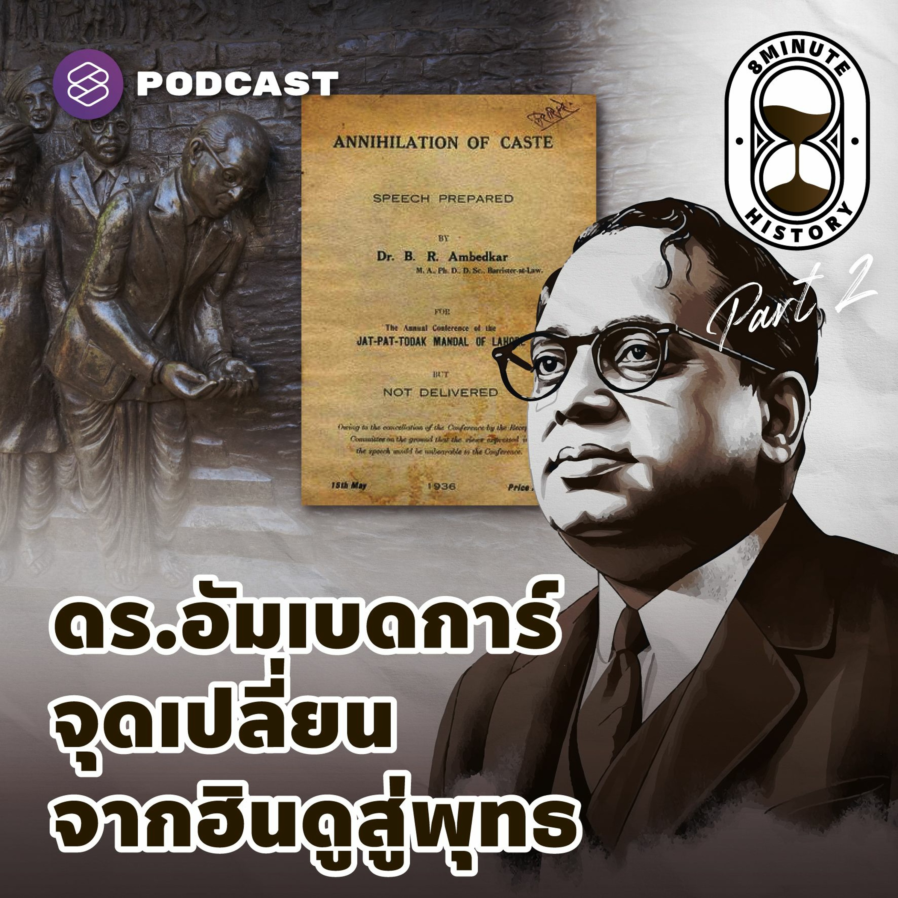 8 Minute History เอพิโสดนี้ พาไปเจาะลึกประวัติและปูมหลังชีวิตของ ดร.อัมเบดการ์ ผู้ซึ่งเป็นทั้งนักกฎหมาย นักเศรษฐศาสตร์ และนักการเมืองที่มีบทบาทสำคัญในการต่อสู้เพื่อสิทธิและความเท่าเทียมของ ‘ฑลิต’ ชนชั้นต่ำสุดในสังคมอินเดีย รวมถึงการเบนเข็มศรัทธาของตัวท่าน ซึ่งตัดสินใจเปลี่ยนศาสนาเป็นพุทธศาสนิกชนในช่วงบั้นปลายชีวิต