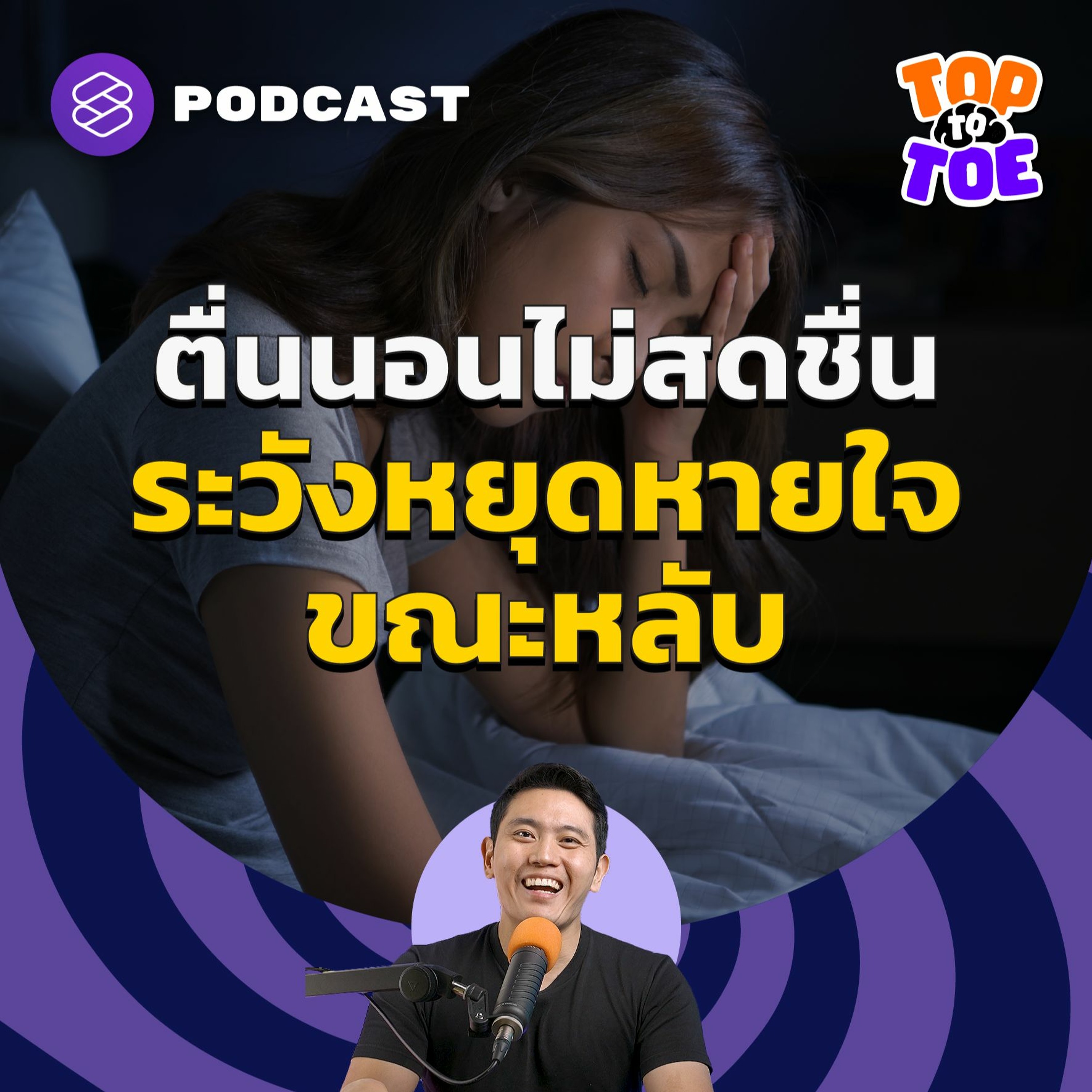รายการ Top to Toe และ ดร.ข้าว ต้นสมบูรณ์ จะพาไปสำรวจอาการและสาเหตุของภาวะหยุดหายใจขณะหลับ การรักษาที่มีตั้งแต่การใส่เครื่องช่วยหายใจไปจนถึงการผ่าตัด เพราะถ้าไม่ได้รับการรักษาอย่างถูกวิธีอาจนำมาซึ่งโรคต่างๆ ที่คาดไม่ถึง รวมถึงการใหลตาย และอาจเสียชีวิตได้ในที่สุด