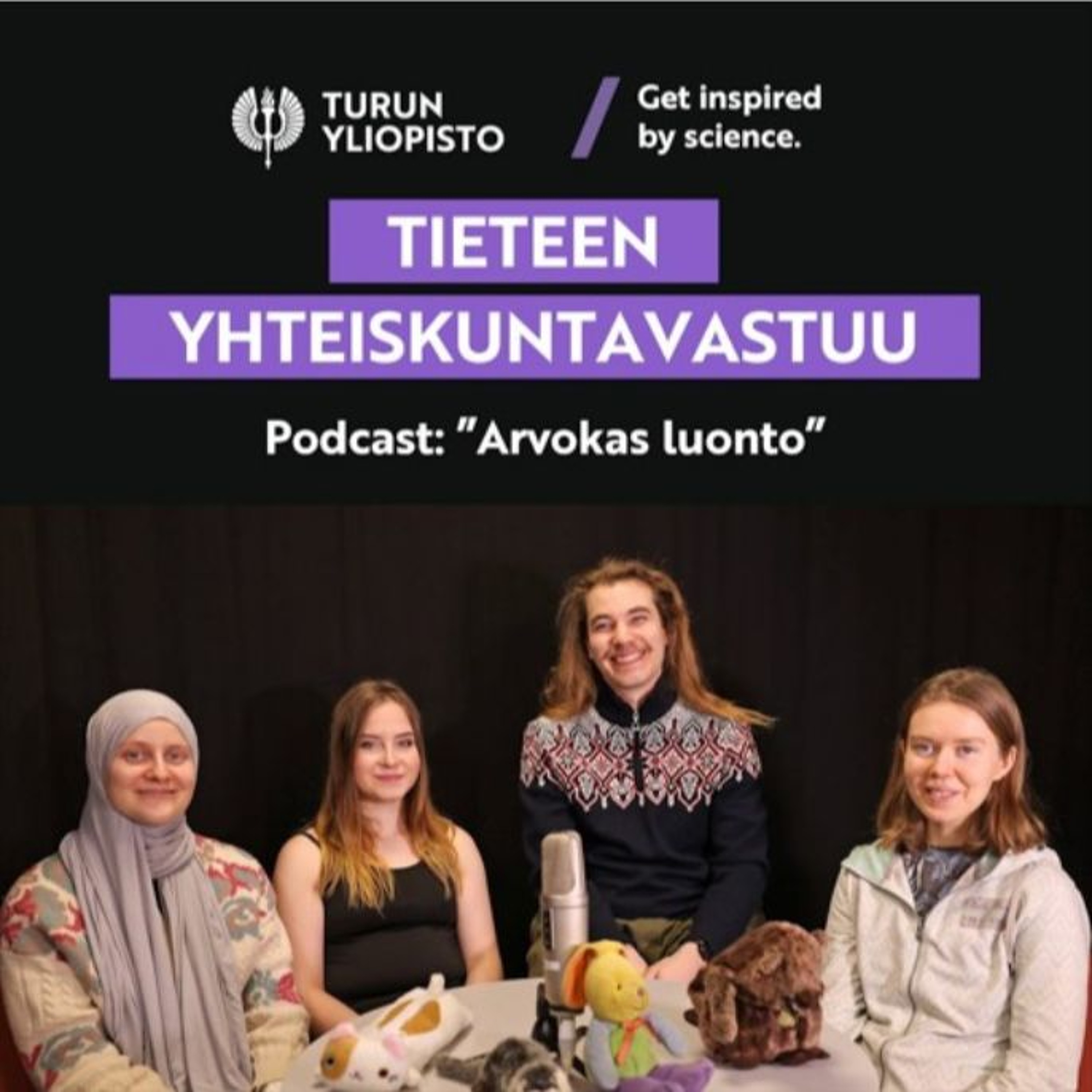 Tieteen yhteiskuntavastuu on Turun yliopiston matemaattis-luonnontieteellisen tiedekunnan kurssikokonaisuus, jossa opiskelijat paneutuvat yhteiskunnallisesti merkittäviin haasteisiin ja siihen, miten niitä voitaisiin ratkaista tieteen avulla. Osa opiskelijoiden projektitöistä toteutuu podcastsarjoina, jotka julkaistaan tällä alustalla. Työn alla on myös lastenkirjoja! Seuraa siis opiskelijoiden tuotoksia ja pysy kärryillä tieteen vaikutusmahdollisuuksista!