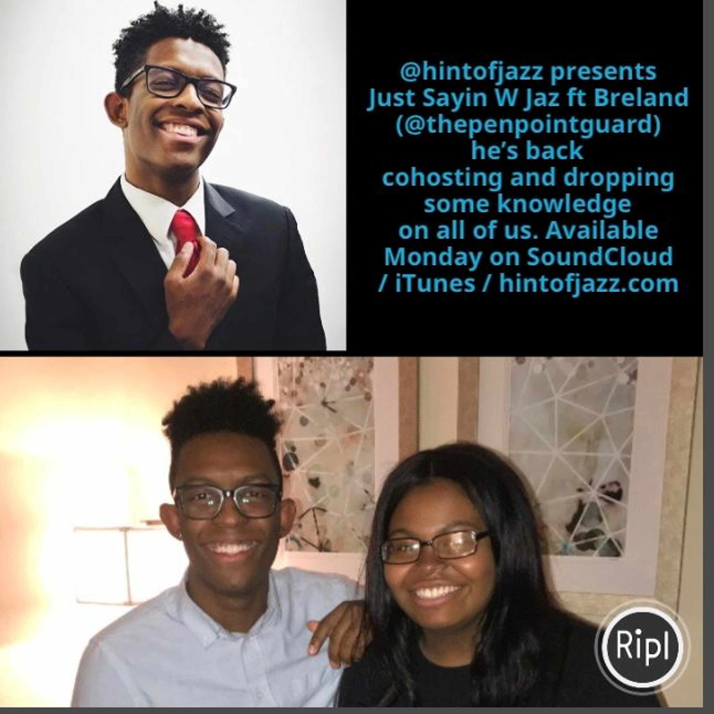 @hintofjazz presents Just Sayin W Jaz fr Breland ( @thepenpointguard ) he’s back cohosting and dropping some knowledge on all of us. Thanks again for taking the time to hang out and talk. This podcast definitely went off topic but that’s what good conversation are. It’s always a dope experience hanging out with you. Keep up the hard work. 💯💪🏽Podcast available Monday on SoundCloud / iTunes / hintofjazz.com