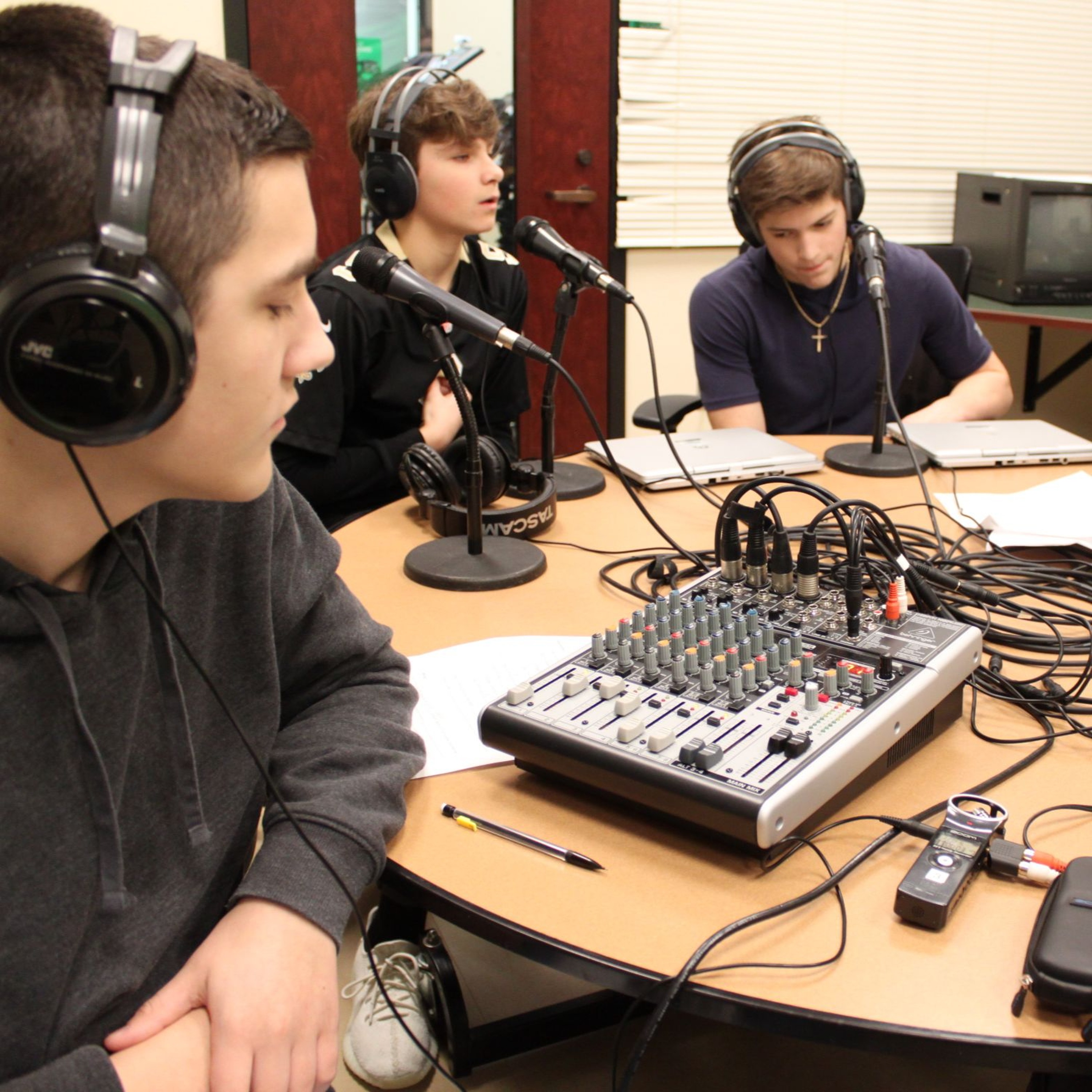 Students in Ms. Reed's broadcast journalism class presenting podcast for topics of their choosing.