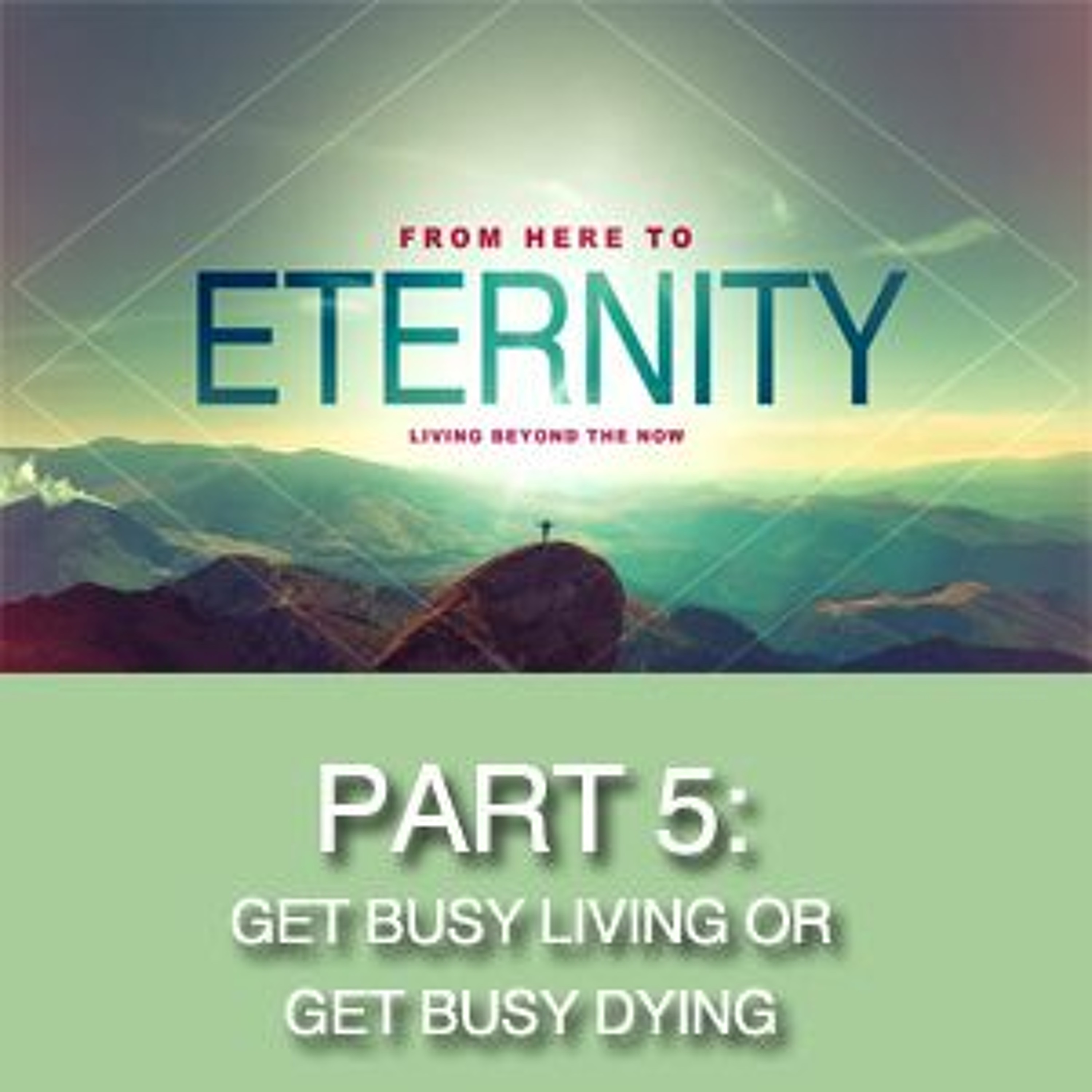 The main character Andy in the "Shaw-shank Redemption" summed up the theme of the movie when he said "It all comes down to this; get busy living or get busy dying". For the Christian that is the heart of the matter! If we are a disciple of Christ then it is time that we put away the notation that our lives are about us and start doing what Jesus calls us to do which is to deny ourselves, take up our cross and get busy following Him. Listen to Part 5