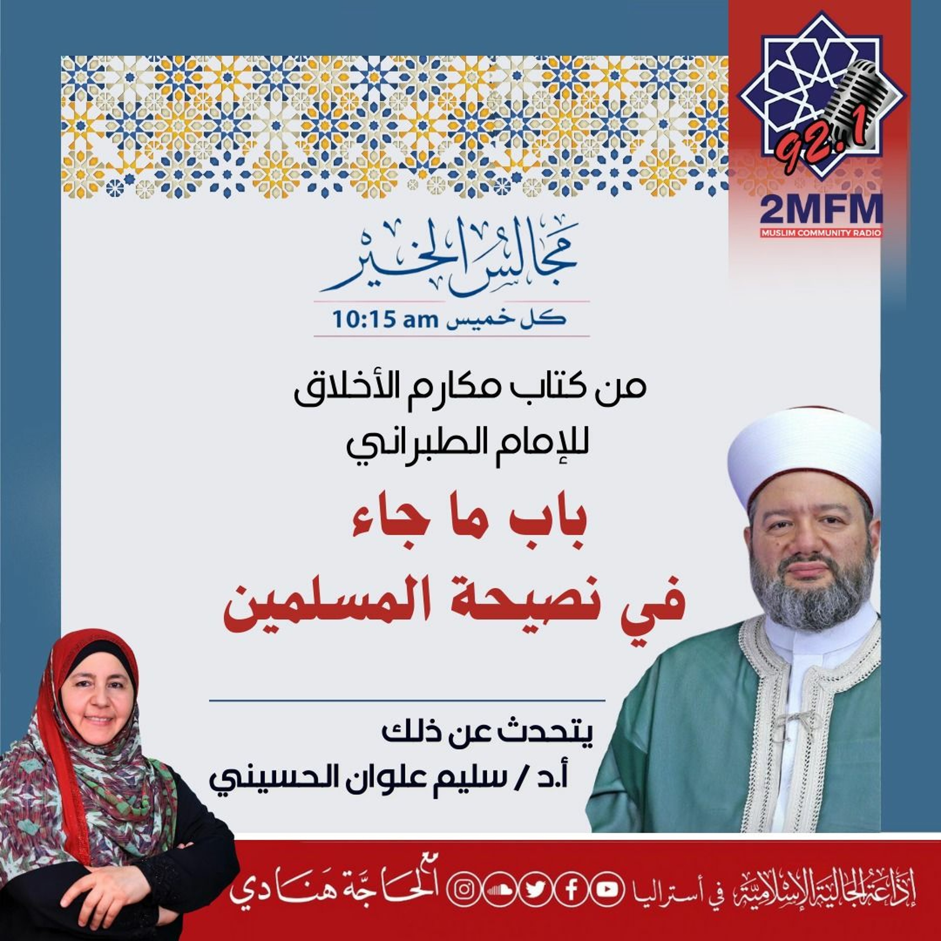 تابع الشيخ الدكتور سليم علوان الحسيني في كتاب مكارم الأخلاق وما جاء في النصيحة للمسلمين .... وذلك خلال استضافته في برنامج مجالس الخير مع الحاجة هنادي