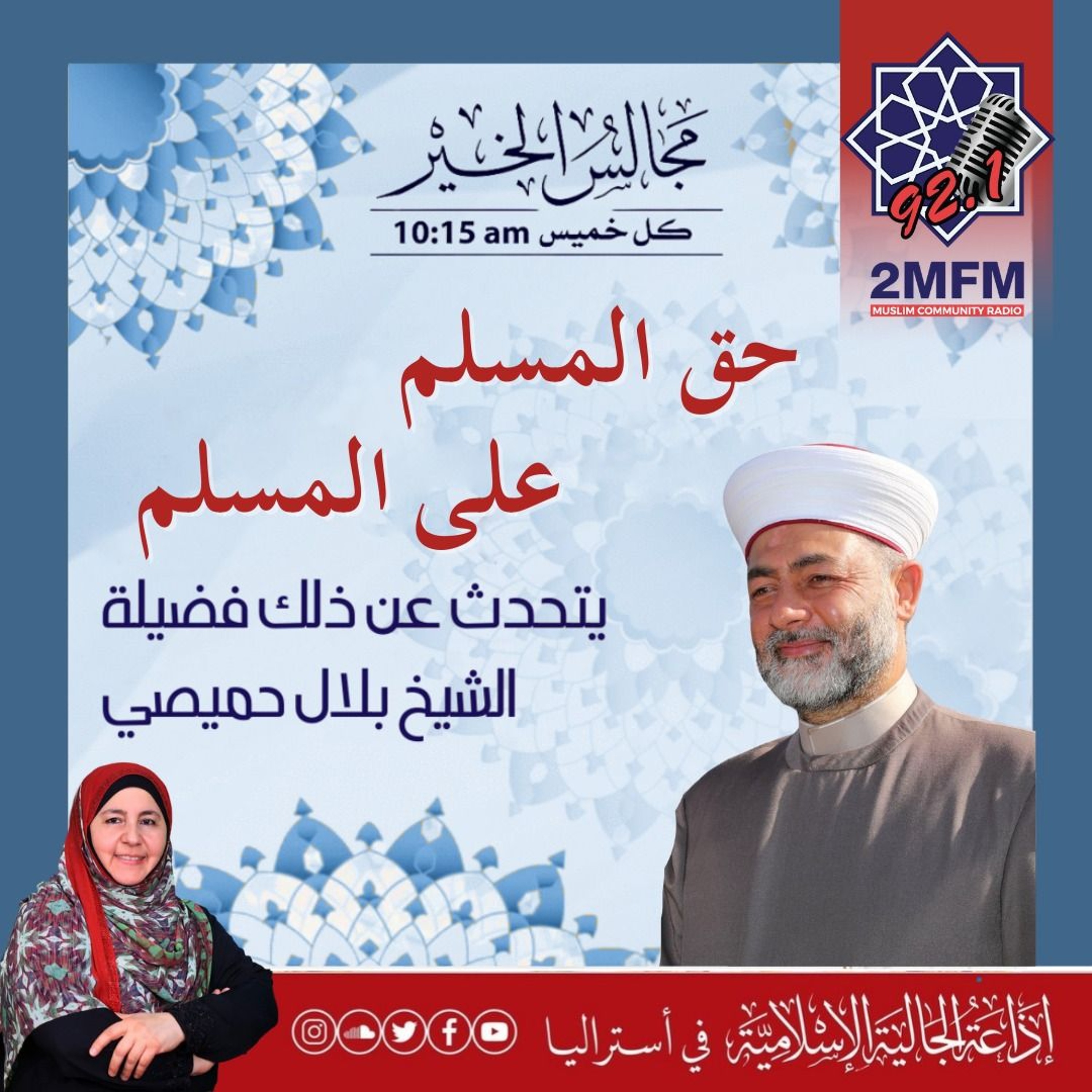 عن حق المسلم على المسلم حدثنا فضيلة الشيخ بلال حميصي حفظه الله في برنامج مجالس الخير عبر أثير إذاعة الجالية الإسلامية