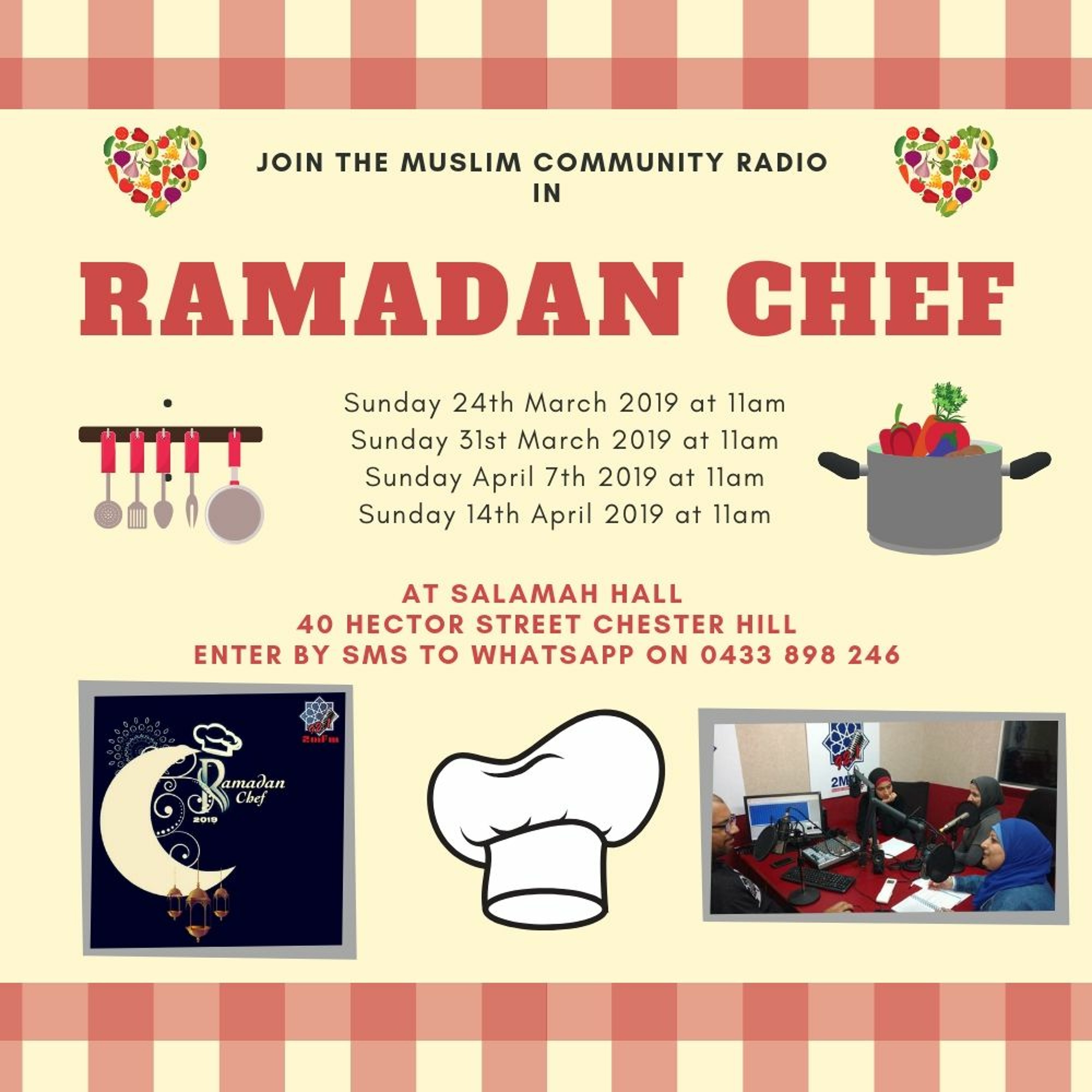 We are pleased to announce an exciting competition before and during Ramadan where adult participants may enter to test their skills in the kitchen. To find out more, SMS to our Whatsapp on 0433 898 246 while spots last