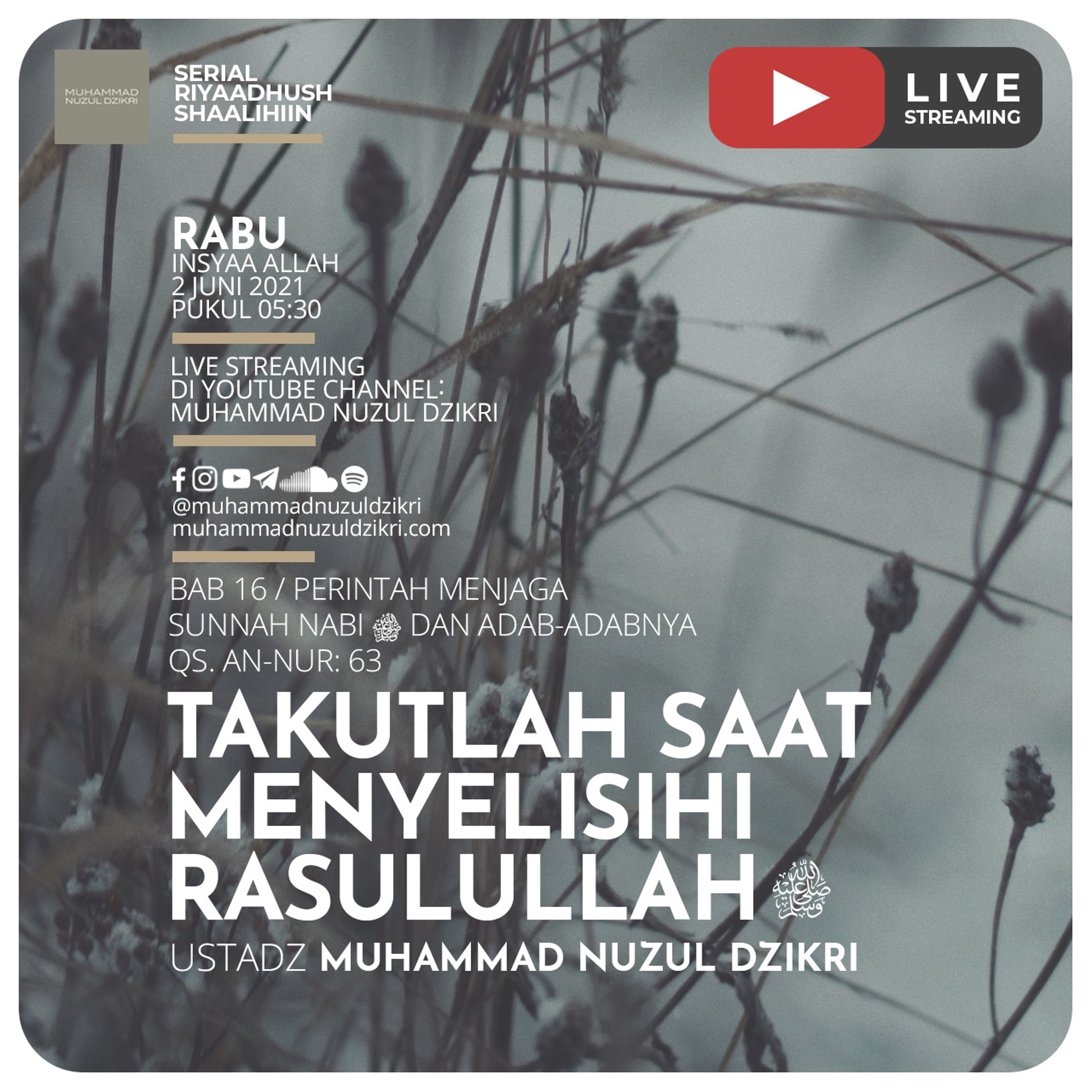 Janganlah kamu jadikan panggilan Rasul diantara kamu seperti panggilan sebahagian kamu kepada sebahagian (yang lain). Sesungguhnya Allah telah mengetahui orang-orang yang berangsur-angsur pergi di antara kamu dengan berlindung (kepada kawannya), maka hendaklah orang-orang yang menyalahi perintah Rasul takut akan ditimpa cobaan atau ditimpa azab yang pedih. (QS. An-Nur: 63)