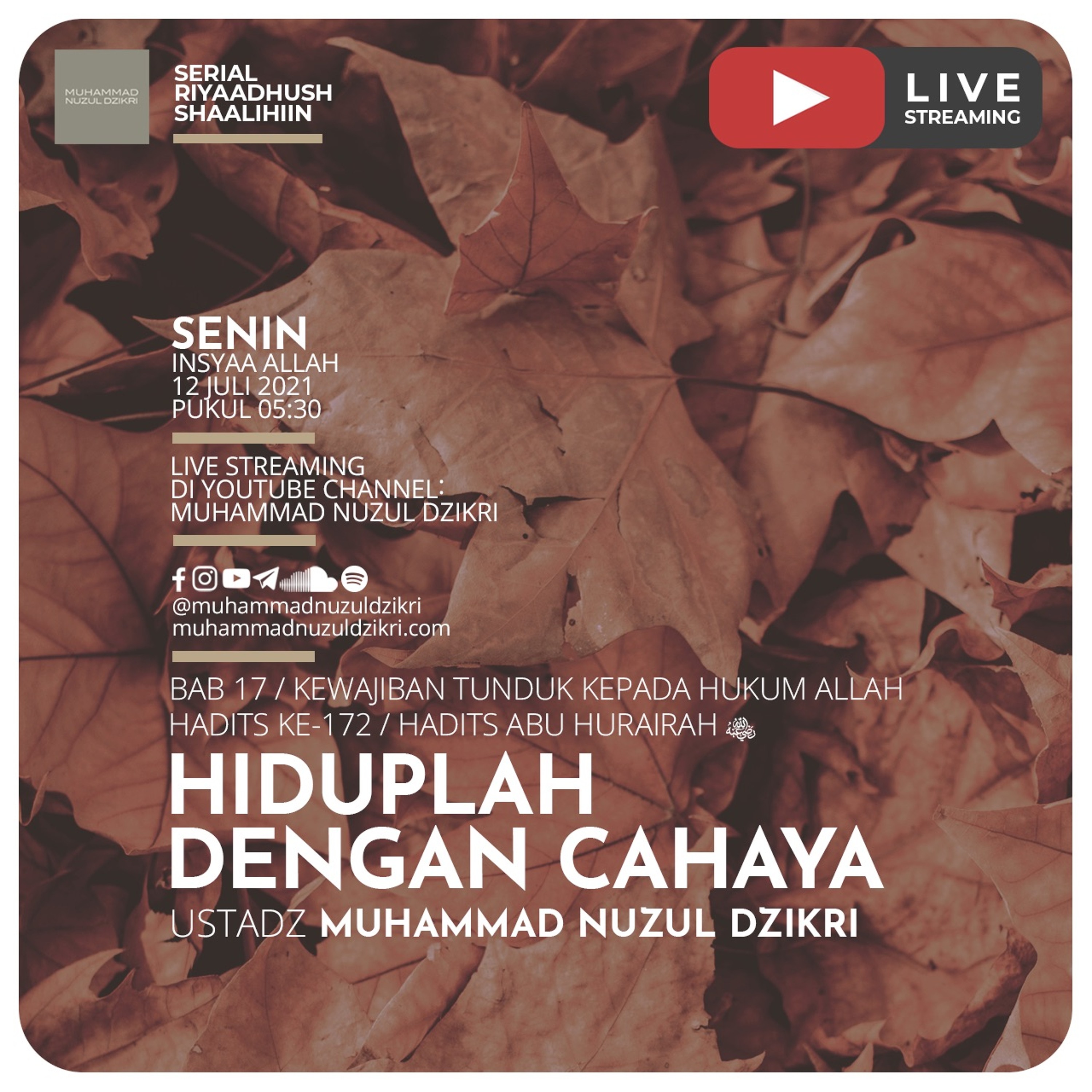 Riyaadhushshaalihiin 432. "HIDUPLAH DENGAN CAHAYA" - Ustadz Muhammad NUzul Dzikri by Muhammad Nuzul Dzikri