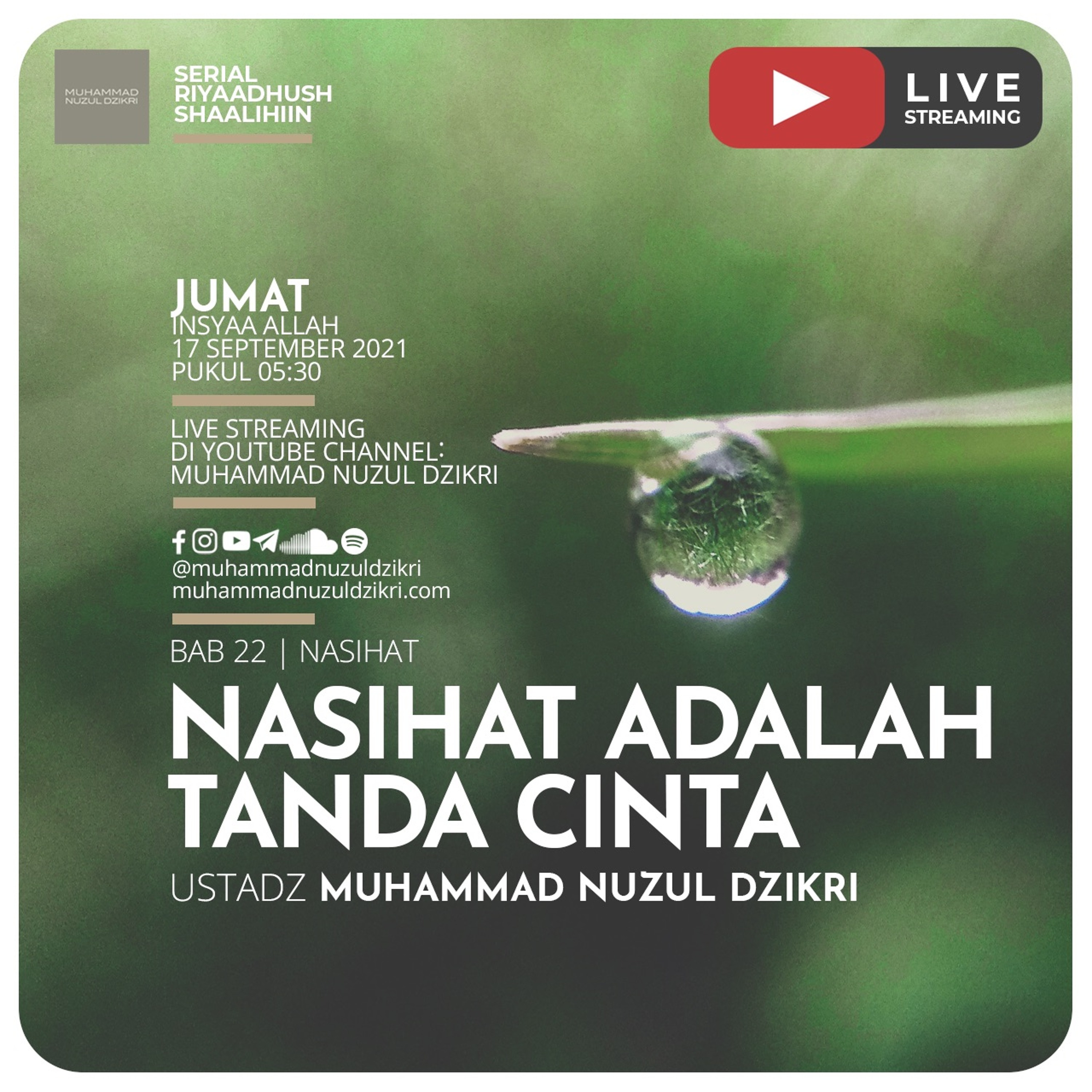 Riyaadhushshaalihiin 494. "NASIHAT ADALAH TANDA CINTA" - Ustadz Muhammad Nuzul Dzikri