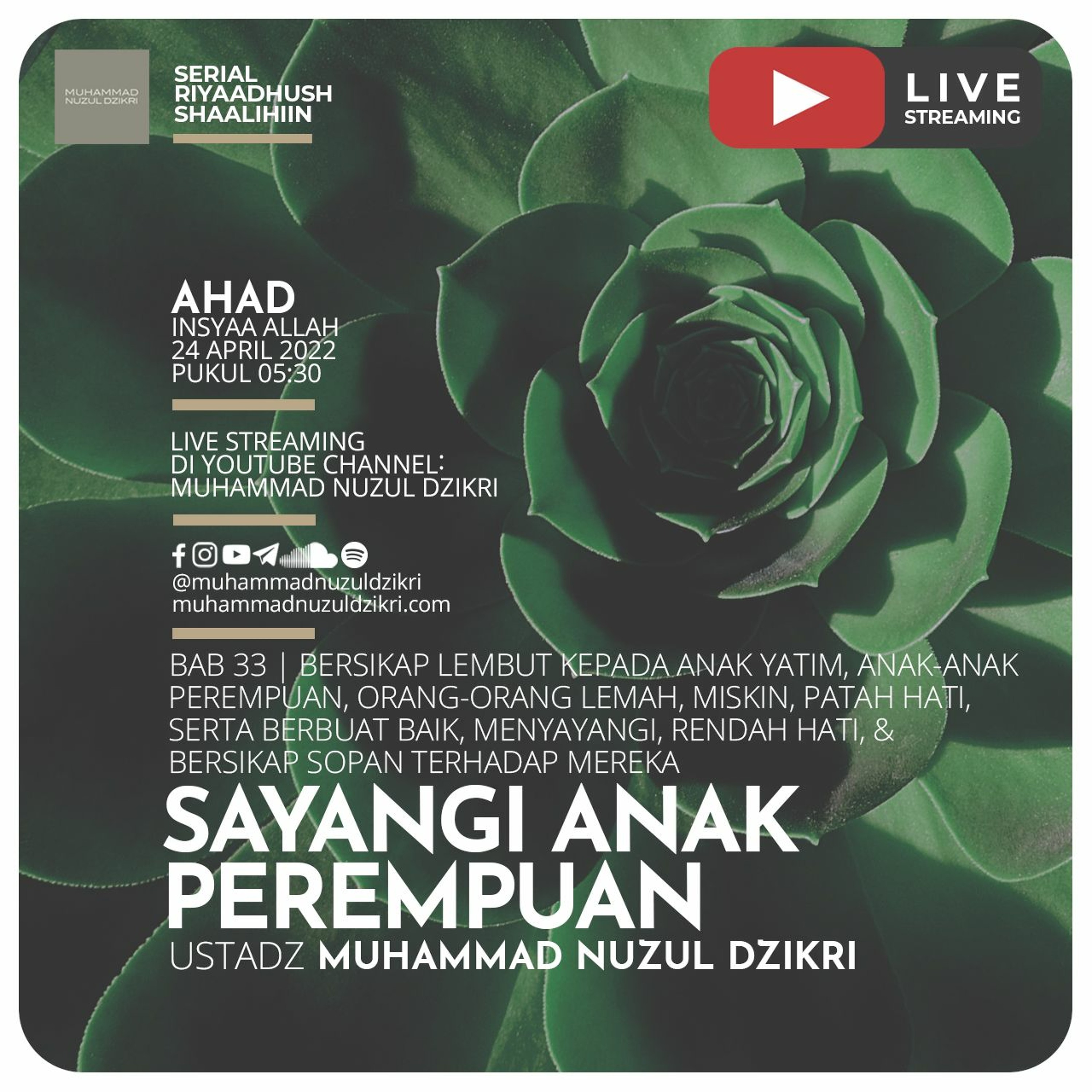 BAB 33 | Bersikap lembut kepada anak yatim, anak-anak perempuan, orang-orang lemah, miskin, patah hati, serta berbuat baik, menyayangi, rendah hati, & bersikap sopan terhadap mereka