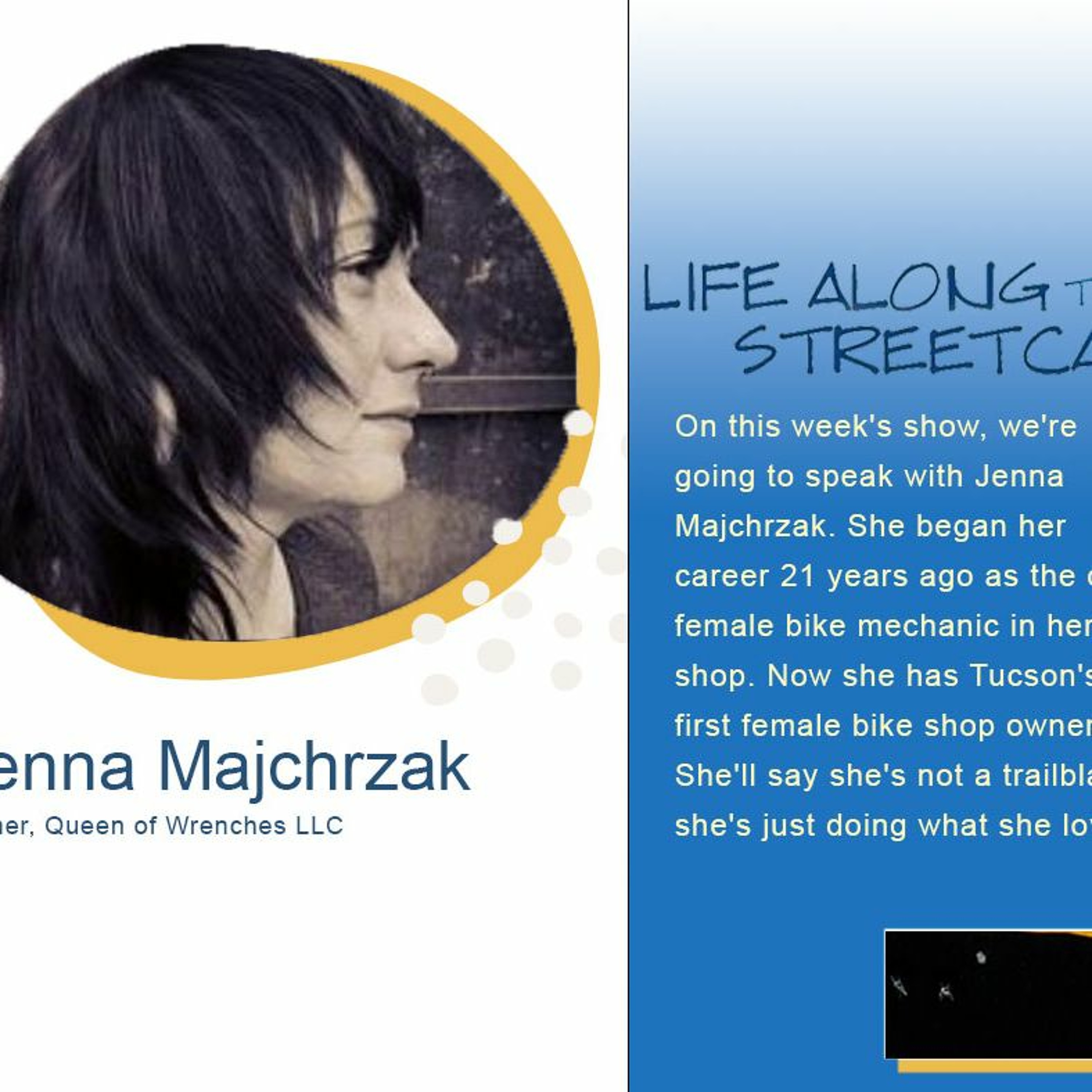 On this week's show, we're going to speak with Jenna Majchrzak. She began her career 21 years ago as the only female bike mechanic in her shop. Now she has Tucson's first female bike shop owner. She'll say she's not a trailblazer, she's just doing what she loves.