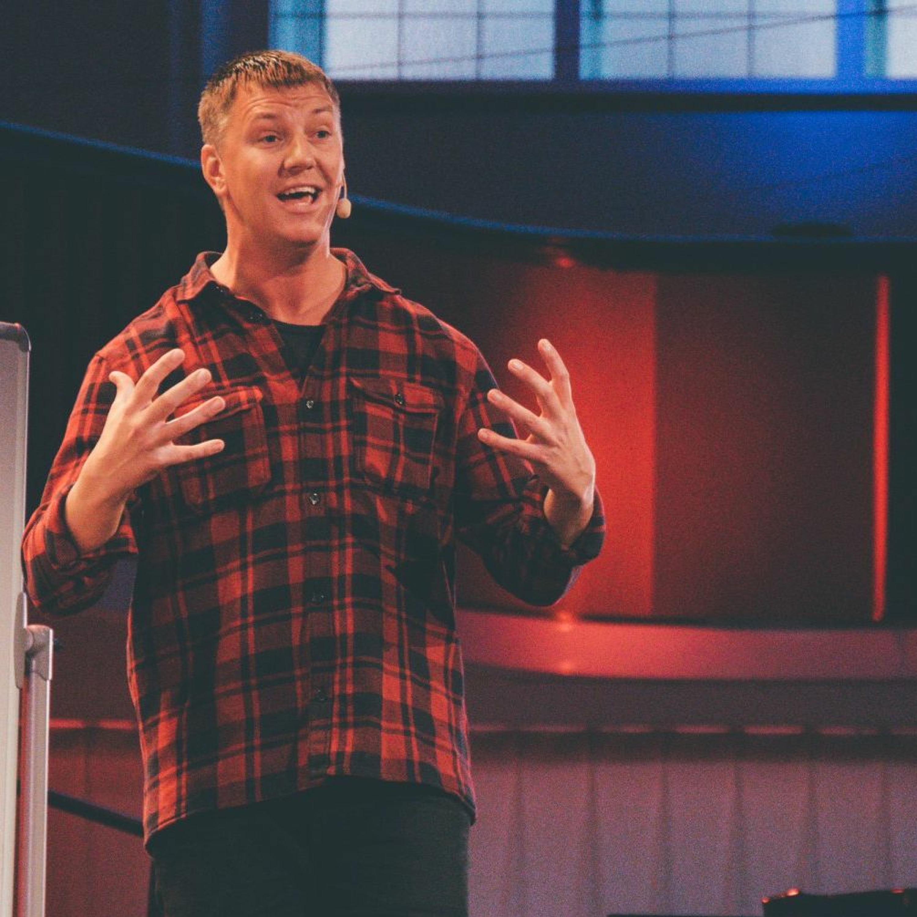 Eric Andersson talar på gudstjänst från Filadelfiakyrkan i Stockholm.