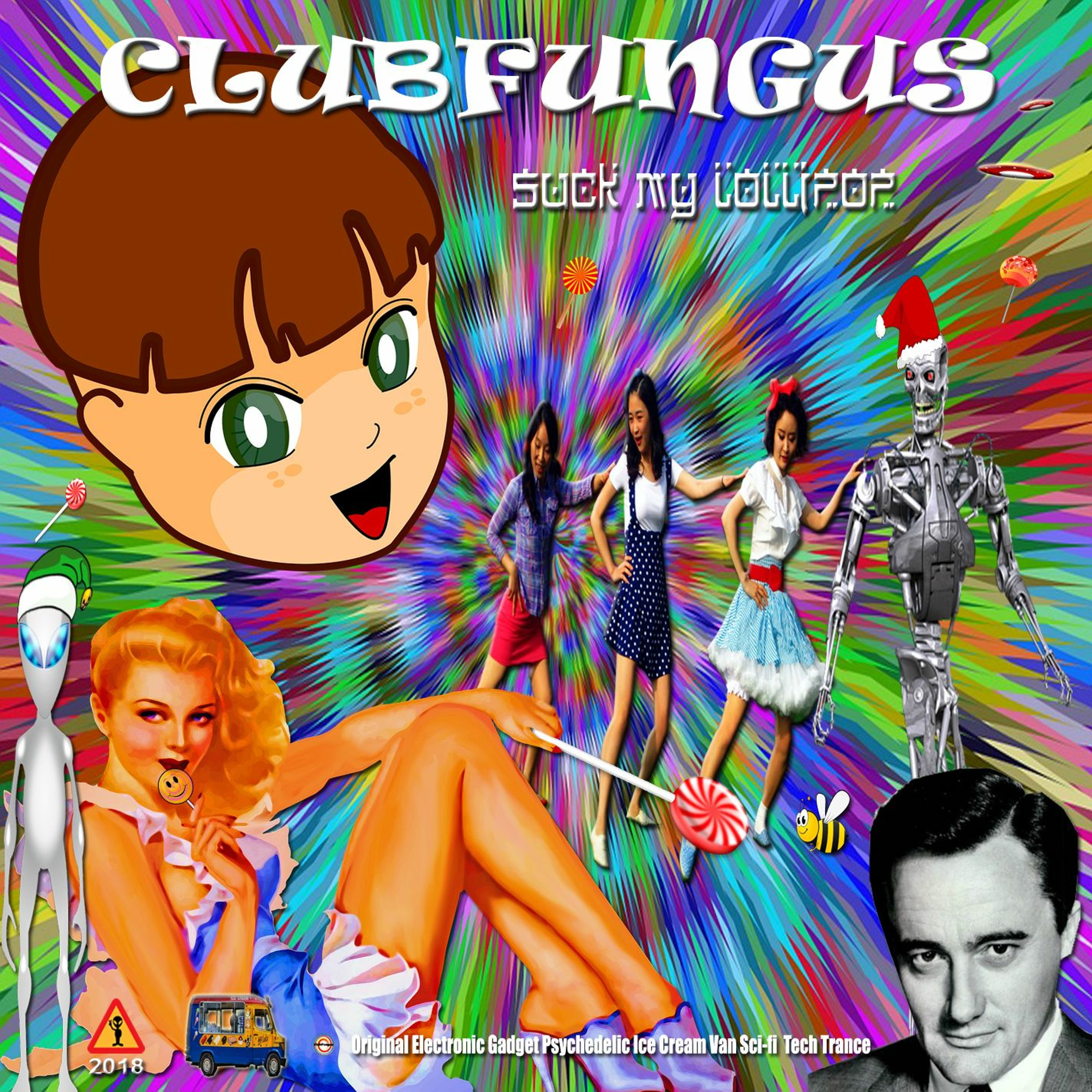 Feast, indulge and have a good suck on the cosmic mystical and magical lollipop which is thought to be an alien bio entity that escaped from a SpaceForce X mission and happens to look like a lollipop which emits irrisistable oddors and secreates special magical enzymes that fuse and intertwine with your dna upon sucking or licking and with only one in existance and its were abouts currently unknown in a sea of lollipops in Candyland ready for the next unsuspecting sucking licker who finds it to be ripped out of this universe and transported to a spaced out original ice cream van fun filled twisting and turning foot stomping positive feeling triumphant electro psychedelic acid rock gaming retro soundtrack journey and ride into the inner consiciousness, through the workings of time and dimensions with a feeling of excitment and nervous intrepidation at what will happen next but as with all great trips they must come to an end and the powers of the lolly only last so long and then no matter how much you suck and lick, it will never work again and the trip is forgotten for you and thus the lolly is thrown away to wait for another unsupecting tongue to slurp on its goodness!
