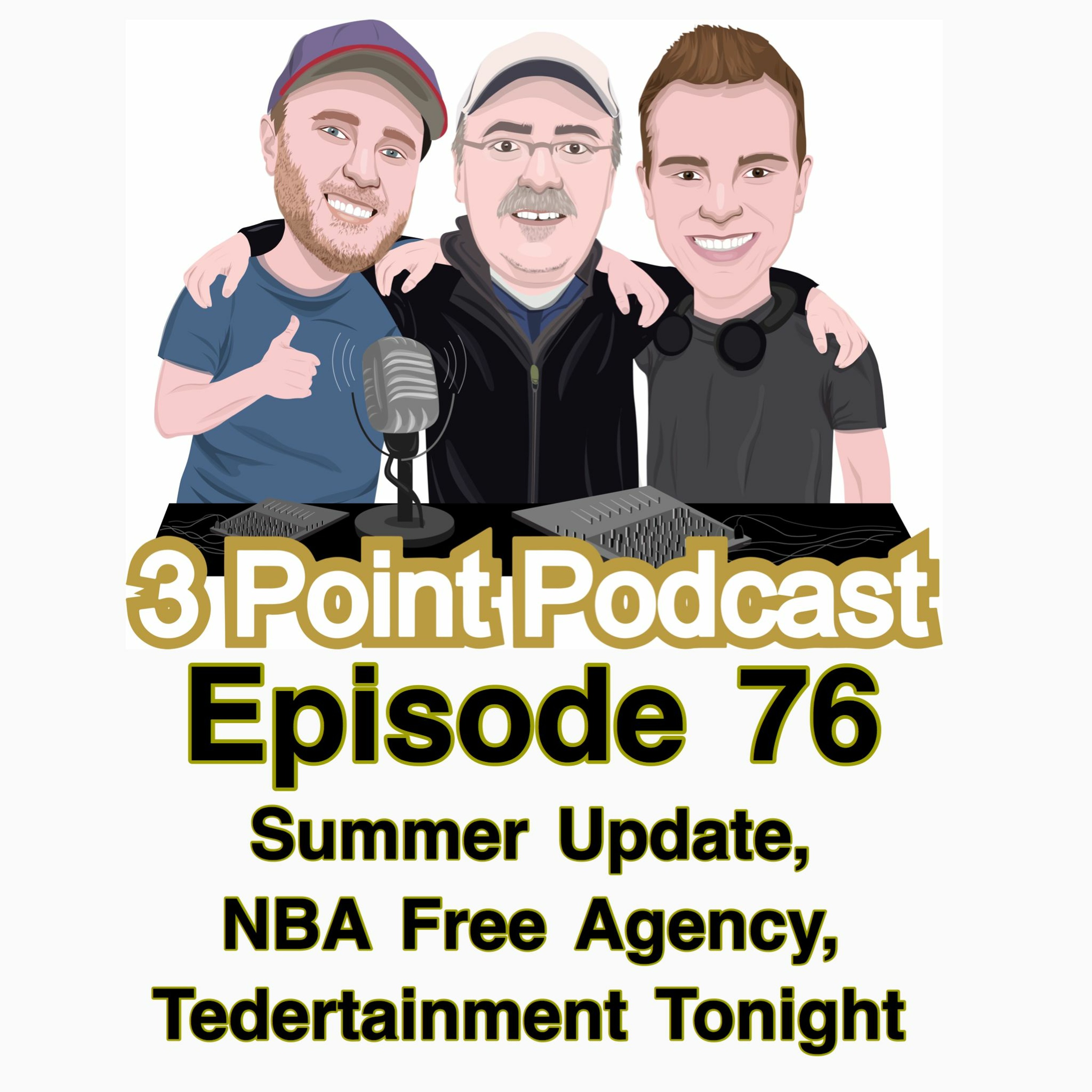 The fellas are back after a quick break for their latest pod! An update on what's been going on this summer with the guys; Disney, work Up North in Michigan, a kayak dock, and more! The guys talk about the free agent frenzy in the NBA, and have a full summer Tedertainment Tonight segment. Hit us up on all social sites @3pointpod!