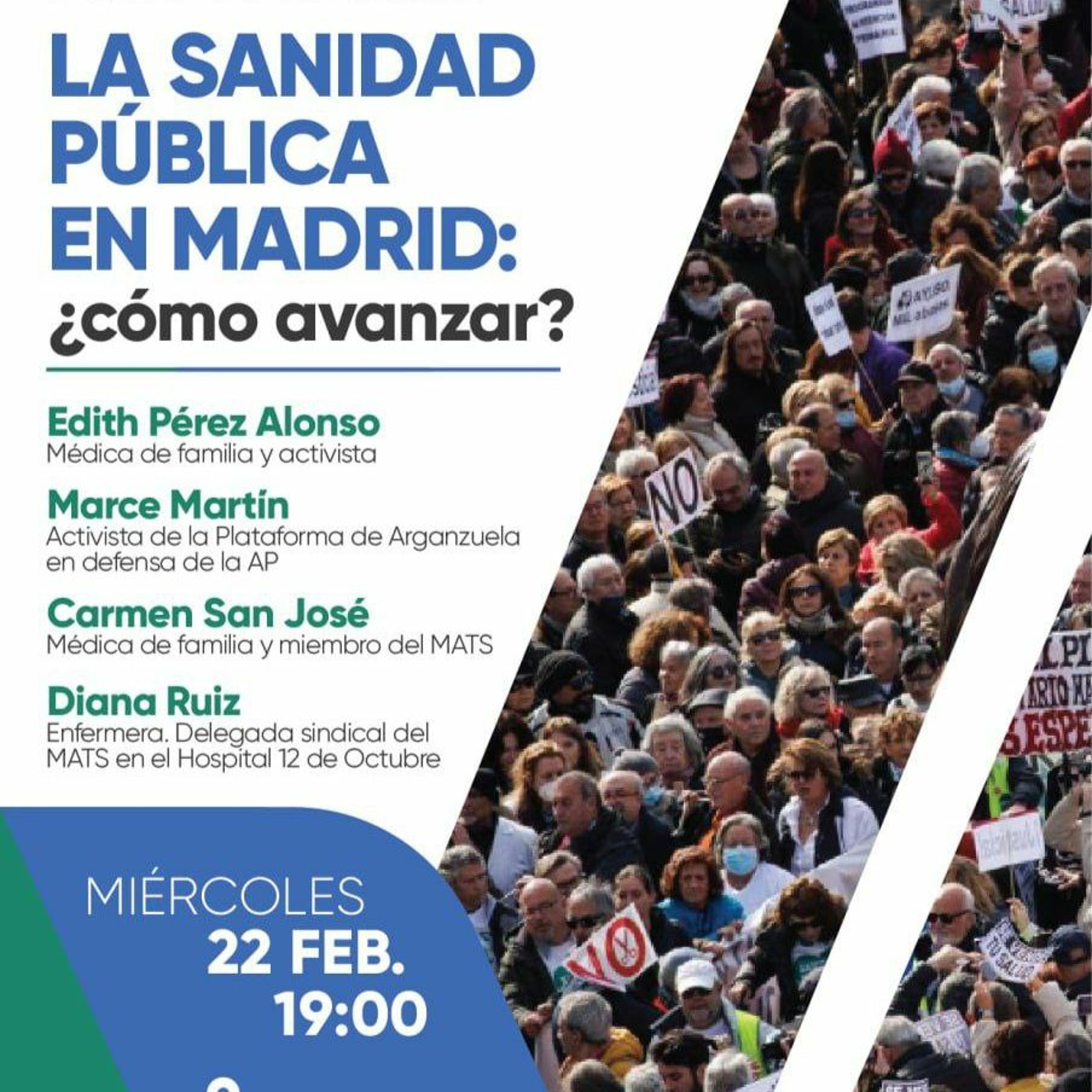 Con la intervención de Edith Pérez Alonso (médica de familia y activista), Marce Martín ( activista de la Plataforma de Arganzuela en defensa de la Atención Primaria), y Diana Ruiz (enfermera, delegada sindical del MATS) en el Hospital 12 de Octubre).