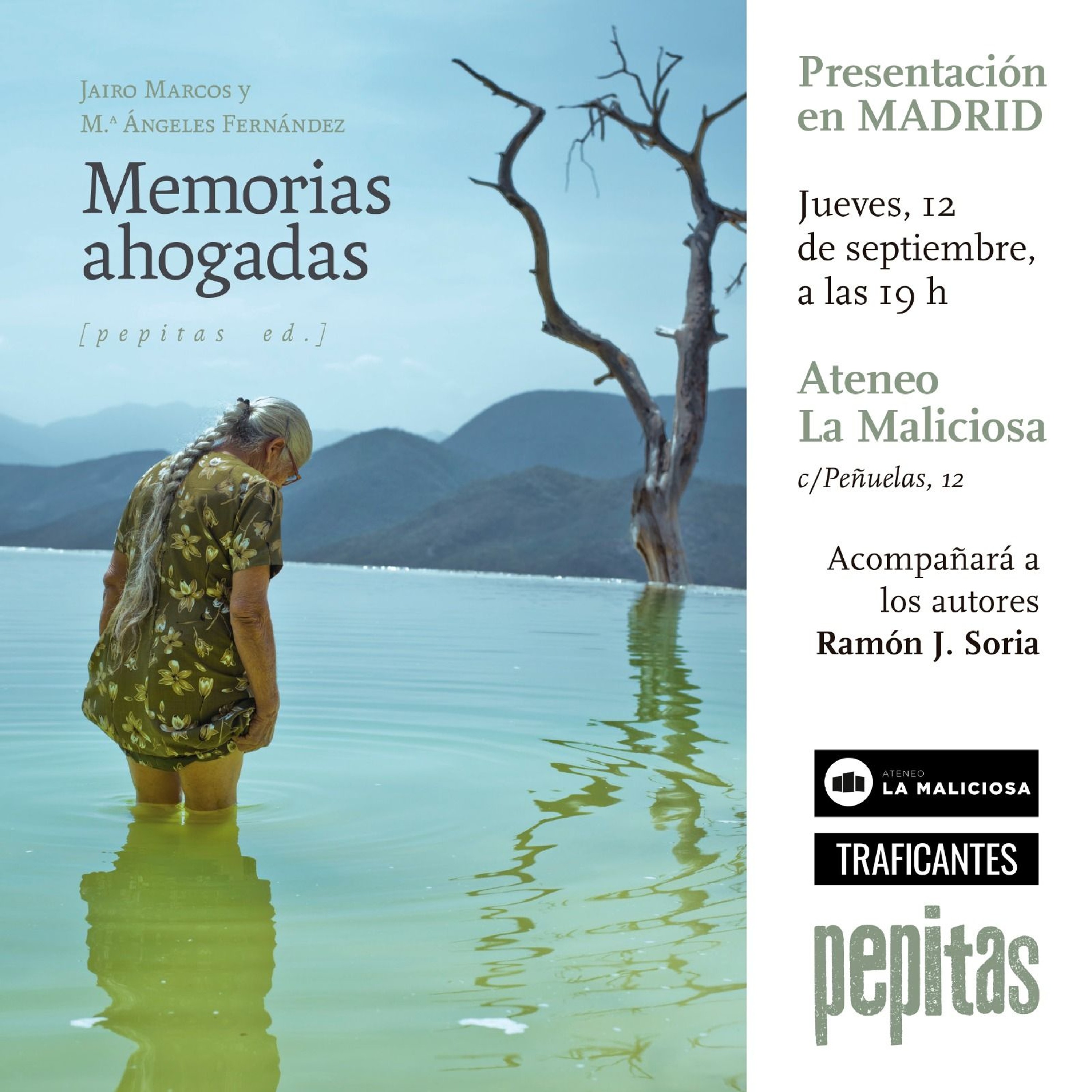 Con Jairo Marcos y Mª Ángeles Fernández, autoras; y Ramón J. Soria. Una inmersión en las vidas y las historias de quienes, en diversos lugares de España, tuvieron que dejar sus pueblos, tierras y hogares, sus quehaceres, raíces y formas de vida, también sus muertos, debido a la construcción de un embalse. Este libro trata sobre la búsqueda de la memoria, de todas esas memorias ahogadas, y de su reconstrucción a través de la palabra escrita.