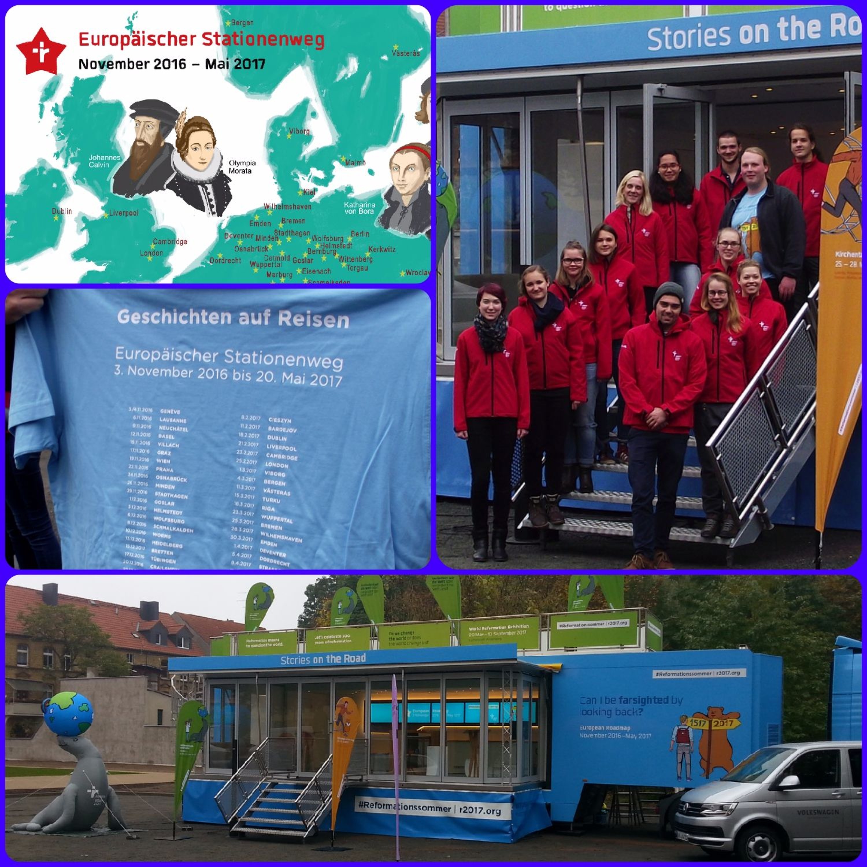 Auf der Reise zu 68 Stationen in 19 europäischen Ländern sammeln die Freiwilligen Geschichte(n) der Reformation und bringen diese europäischen Geschichten im Mai 2017 zur Weltausstellung Reformation nach Wittenberg
