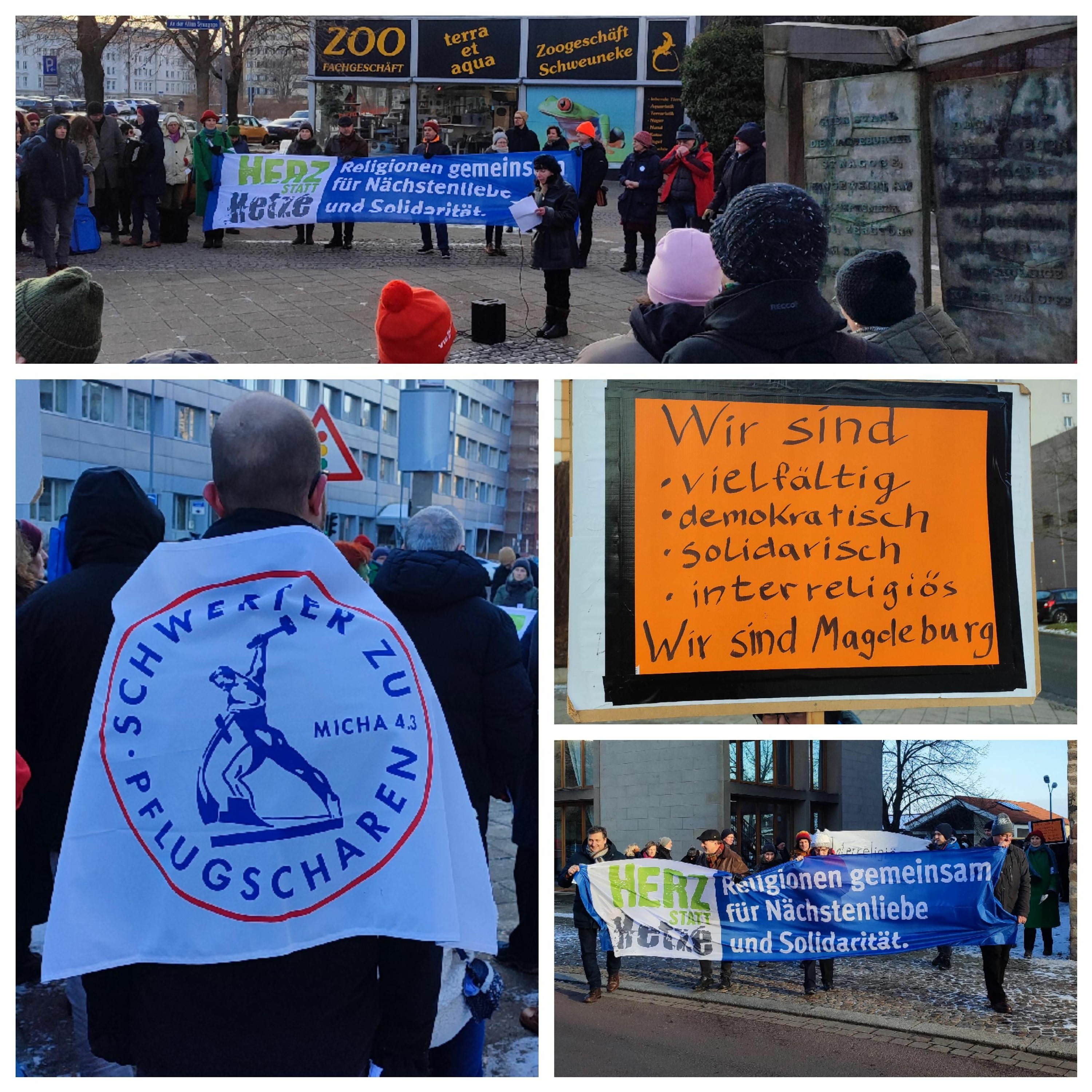Auf einem interreligiösen Friedensweg durch die Magdeburger Innenstadt haben Menschen am Wochenende der Zerstörung der Stadt im Januar 1945 gedacht und mit Liedern und Gebeten für Frieden demonstriert.