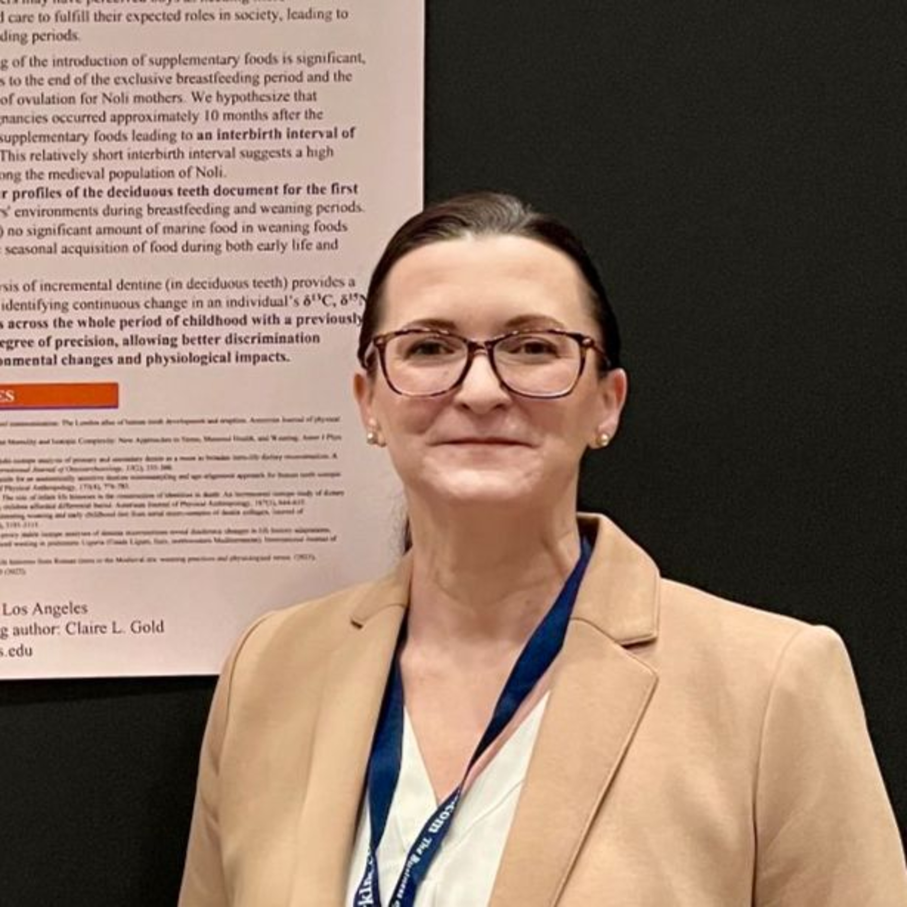 Chris and Courtney host Claire Gold, a Ph.D. candidate in the Department of Anthropology at The University of Massachusetts, Amherst, where she studies the life histories and diet of the women and children from a Medieval Italian population. Claire received her MA in Biological Anthropology from the State University of New York, Binghamton, where she focused on the reproductive correlates of reproductive cancers. Since then, she has raised three children with her husband. In 2019, Claire decided to pursue her PhD at 45 to continue contributing to relevant research on women's and children’s health. She is interested in early life events in modern humans and archaeological populations. Claire is a member of the Society for American Archaeology, the American Association of Biological Anthropologists, the Human Biology Association, the American Investigative Society of Cold Cases, and the International Society for Evolution, Medicine, and Public Health.